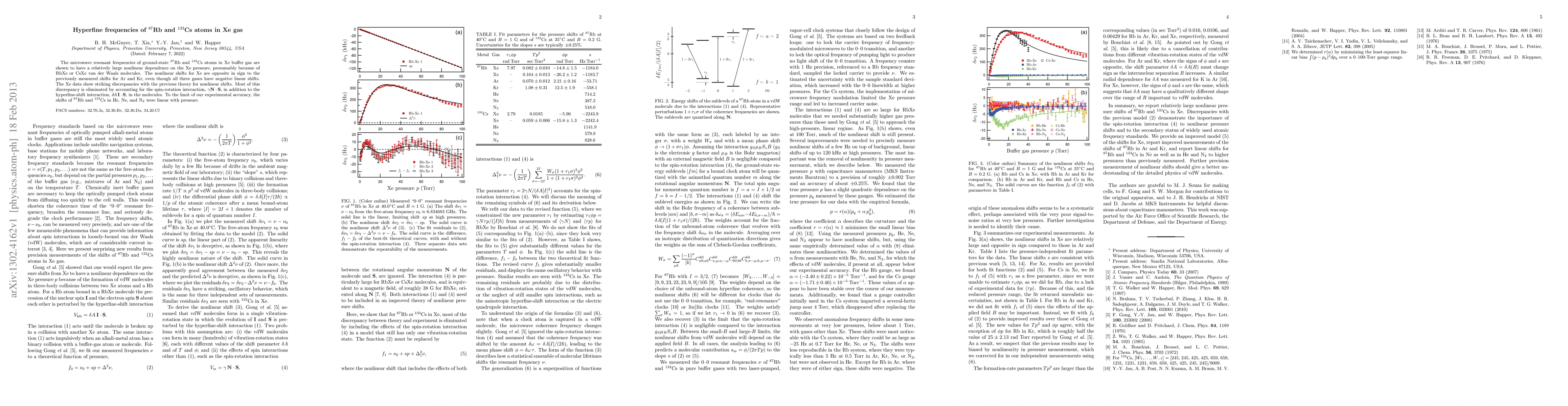 The microwave resonant frequencies of ground-state 87Rb and 133Cs atoms in Xe buffer gas are shown to have a relatively large nonlinear dependence on the Xe pressure, presumably because of RbXe or CsXe van der Waals molecules. The nonlinear shifts for Xe are opposite in sign to the previously measured shifts for Ar and Kr, even though all three gases have negative linear shifts. The Xe data show striking discrepancies with the previous theory for nonlinear shifts. Most of this discrepancy is eliminated by accounting for the spin-rotation interaction in addition to the hyperfine-shift interaction in the molecules. To the limit of our experimental accuracy, the shifts of 87Rb and 133Cs in He, Ne, and N2 were linear with pressure.