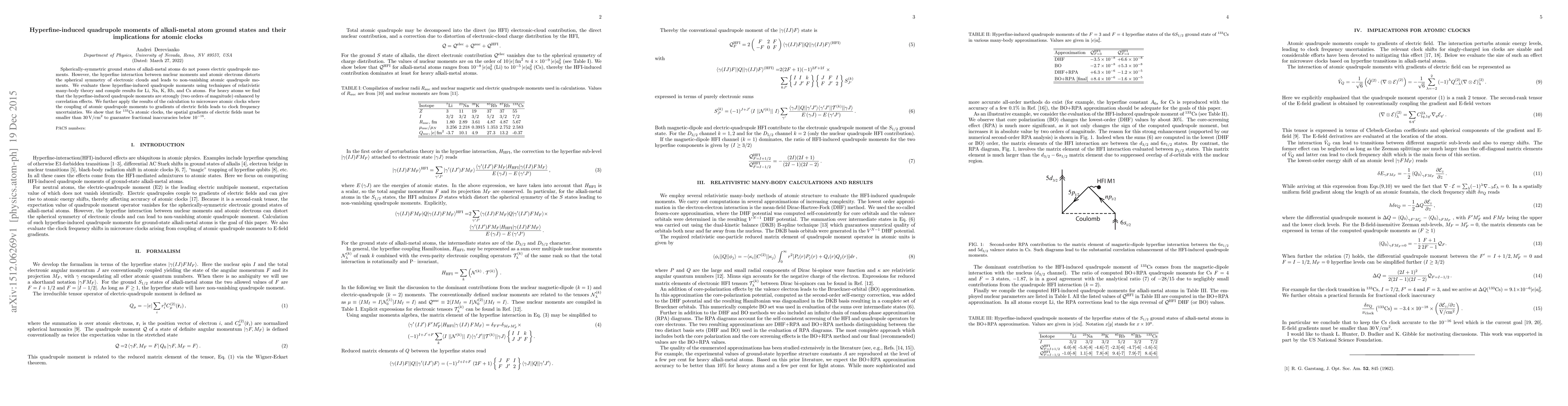 This paper evaluates the hyperfine-induced quadrupole moments in alkali-metal atoms using relativistic many-body theory, revealing significant correlation effects in heavier atoms. The findings are applied to atomic clocks, showing that for $^{133}$Cs clocks, electric field gradients must be below $30 \, \mathrm{V}/\mathrm{cm}^2$ to maintain accuracy below $10^{-16}$.