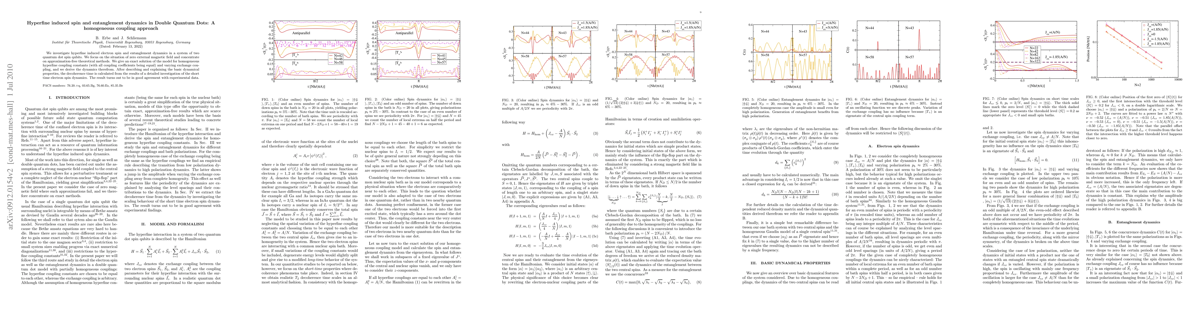 This paper presents an exact theoretical solution for the dynamics of electron spin and entanglement in a double quantum dot system under homogeneous hyperfine coupling and zero external magnetic field. The study reveals the decoherence time, which aligns well with experimental data.