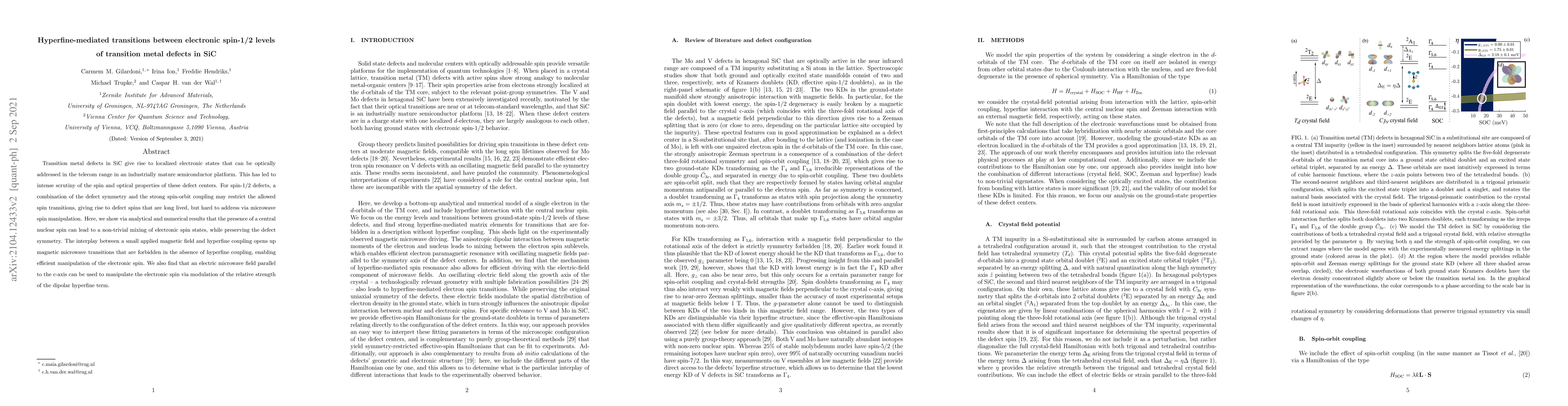 This research demonstrates that hyperfine coupling with nuclear spins in transition metal defects of SiC can mix electronic spin states, enabling microwave manipulation previously restricted. An applied magnetic or electric field parallel to the c-axis can further manipulate the electronic spin via hyperfine term modulation.