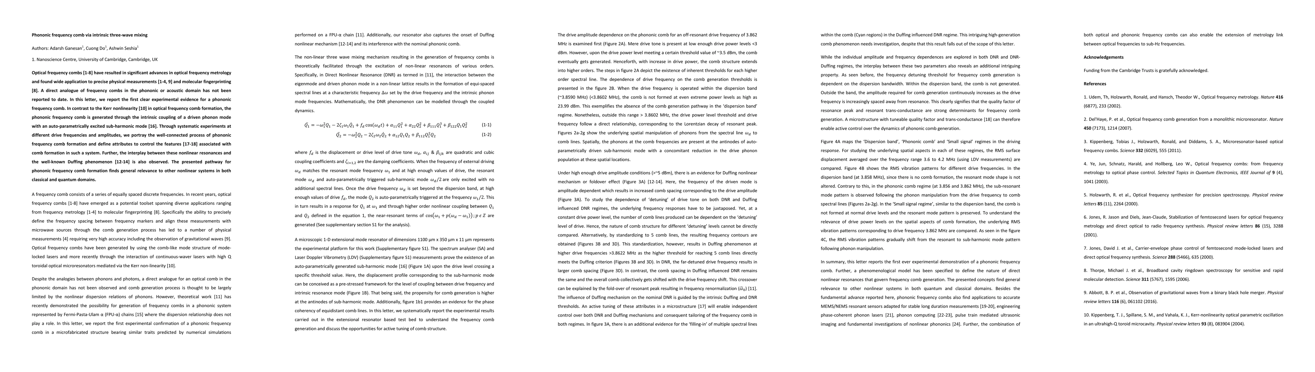 This paper reports the first experimental evidence of a phononic frequency comb, generated through intrinsic coupling of driven phonon modes, contrasting with optical frequency combs. The study explores the formation process and attributes of this phononic comb, highlighting its relevance to nonlinear systems in both classical and quantum domains.