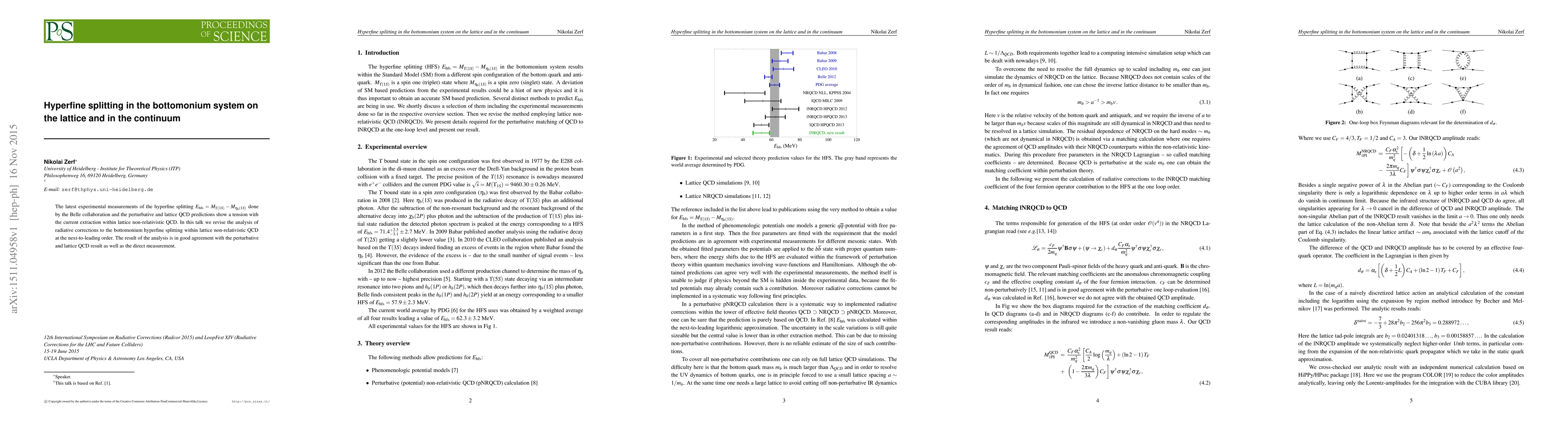 The latest experimental measurements of the hyperfine splitting $E_{\rm{hfs}}=M_{\Upsilon(1 S)}-M_{\eta_b(1 S)}$ done by the Belle collaboration and the perturbative and lattice QCD predictions show a tension with the current extraction within lattice non-relativistic QCD. In this talk we revise the analysis of radiative corrections to the bottomonium hyperfine splitting within lattice non-relativistic QCD at the next-to-leading order. The result of the analysis is in good agreement with the perturbative and lattice QCD result as well as the direct measurement.