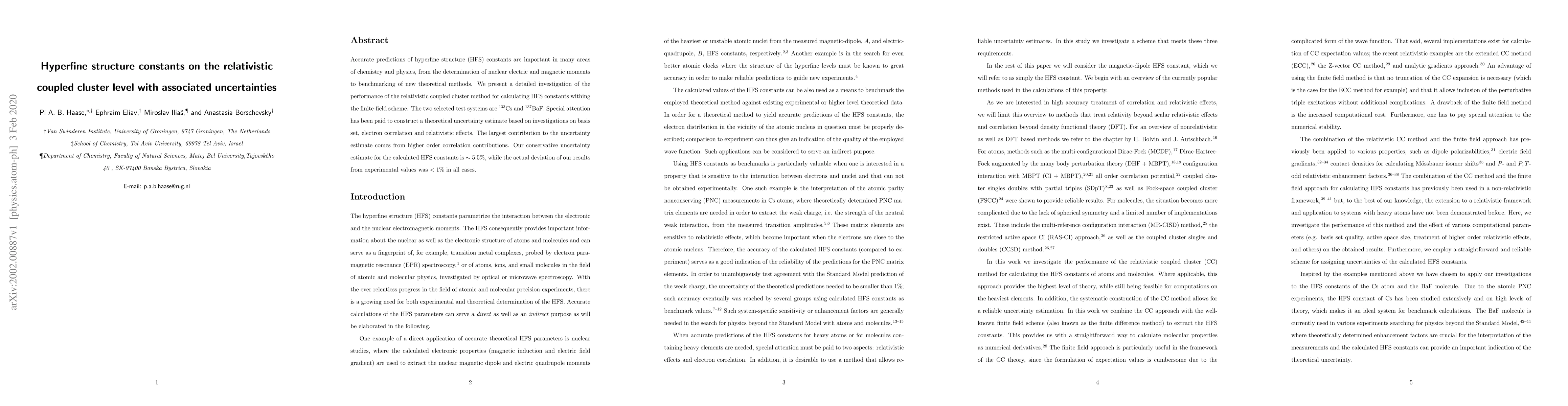 This paper investigates the relativistic coupled cluster method for calculating hyperfine structure constants, focusing on $^{133}$Cs and $^{137}$BaF. The study provides a conservative uncertainty estimate of $\sim$ 5.5%, with actual deviations from experimental values being less than 1%.