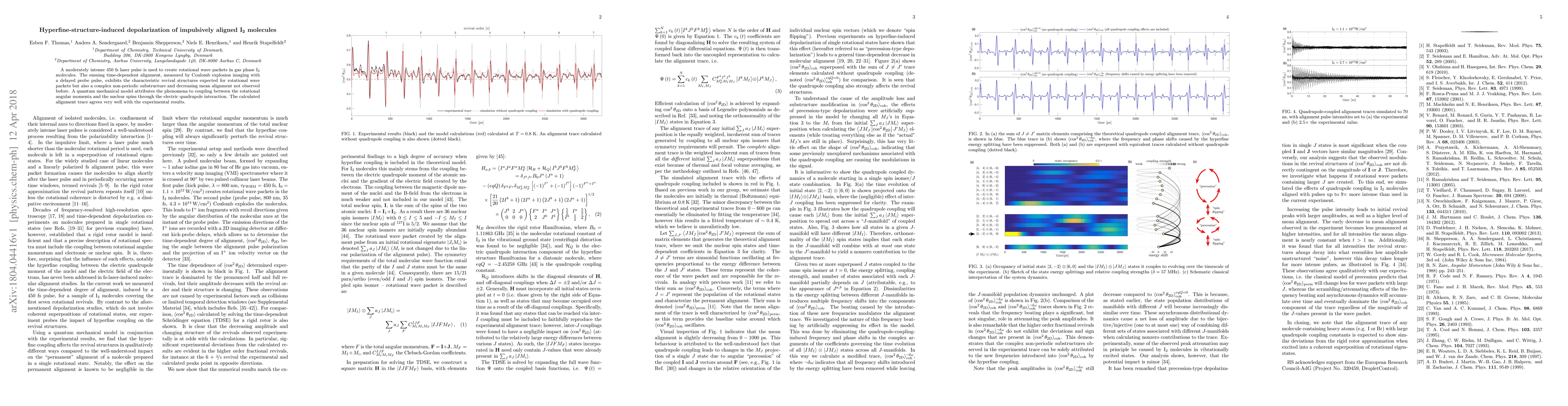 Researchers used a laser pulse to align I2 molecules in gas phase, observing both expected rotational wave packet revival structures and unexpected complex non-periodic substructures. A quantum mechanical model explains the findings by attributing them to coupling between molecular rotations and nuclear spins.