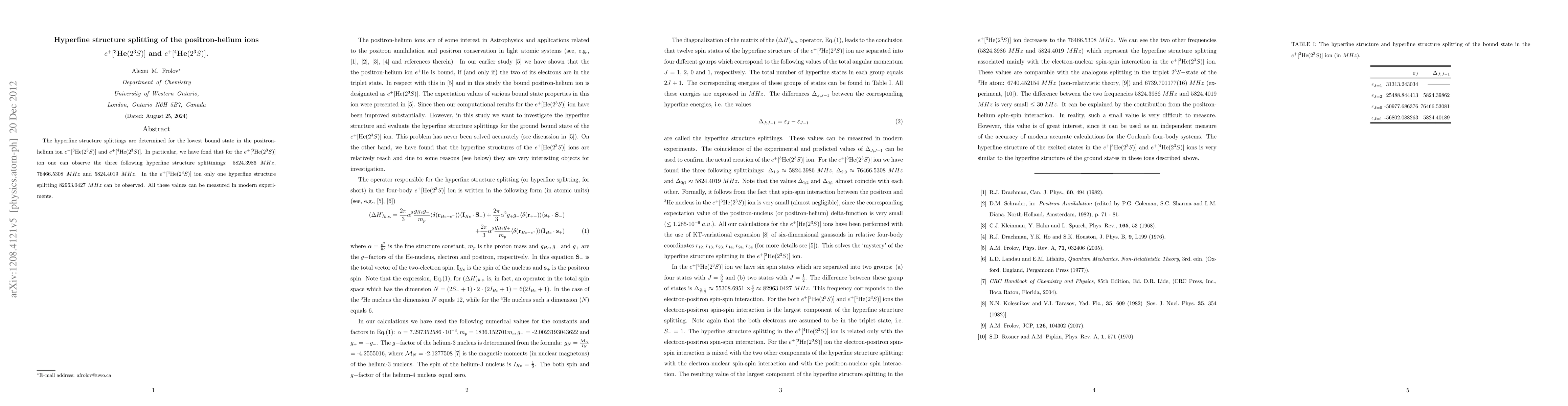 This research determines the hyperfine structure splittings for the lowest bound state in positron-helium ions $e^{+}[^3$He$(2^3S)]$ and $e^{+}[^4$He$(2^3S)]$. The $e^{+}[^3$He$(2^3S)]$ ion exhibits three splittings: 5824.3986 MHz, 76466.5308 MHz, and 5824.4019 MHz, while the $e^{+}[^4$He$(2^3S)]$ ion shows a single splitting of 82963.0427 MHz.