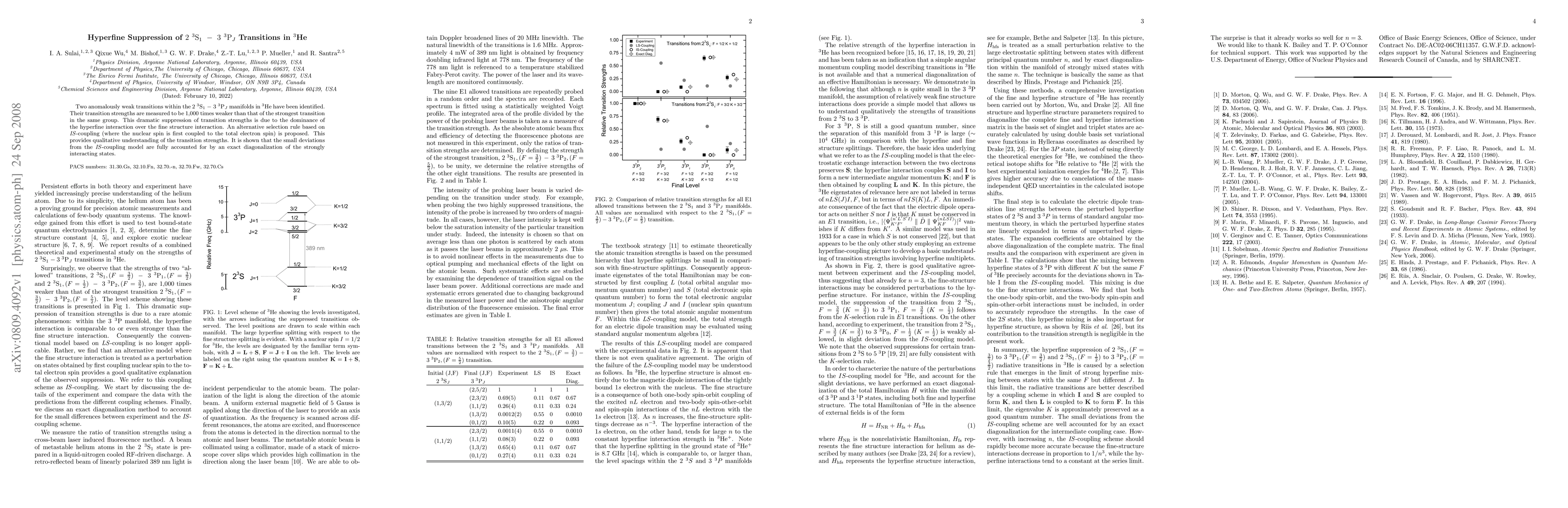 This research identifies two unusually weak transitions in $^3$He's $2 ^3{ m S}_1~-~3 ^3{ m P}_J$ manifolds, 1,000 times weaker than the strongest transition in the same group. The cause is attributed to the hyperfine interaction overwhelming the fine structure interaction. A new selection rule based on extit{IS}-coupling explains these transition strengths, with minor deviations accounted for by exact diagonalization of the strongly interacting states.