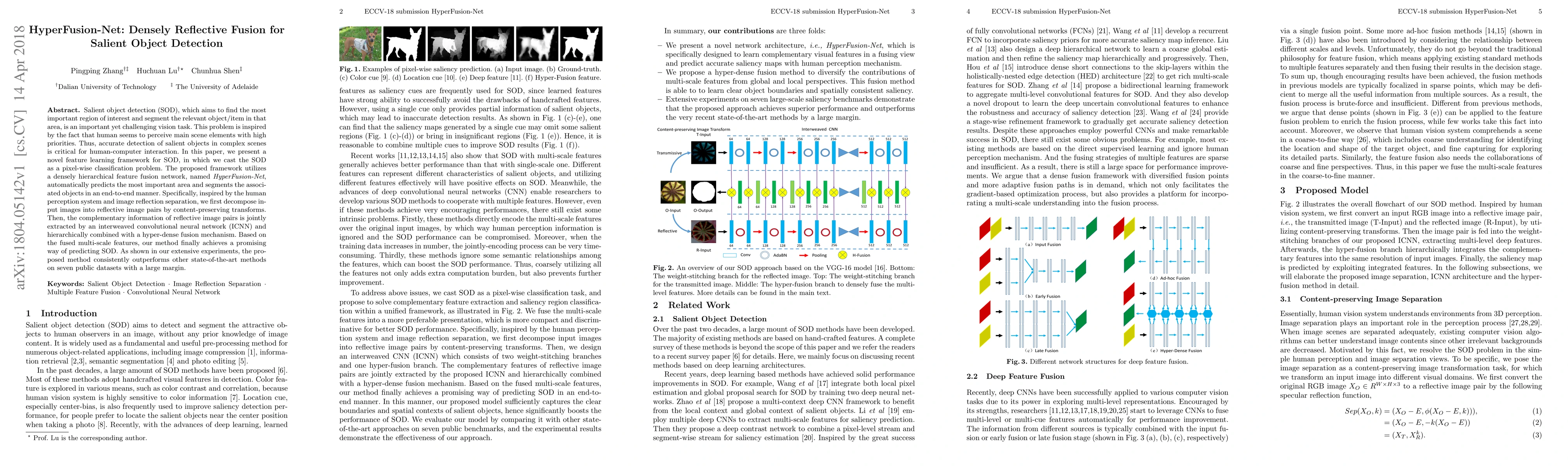 HyperFusion-Net introduces a densely hierarchical feature fusion network for salient object detection, decomposing images into reflective pairs and extracting complementary information through an interweaved convolutional network, achieving superior performance on multiple datasets.