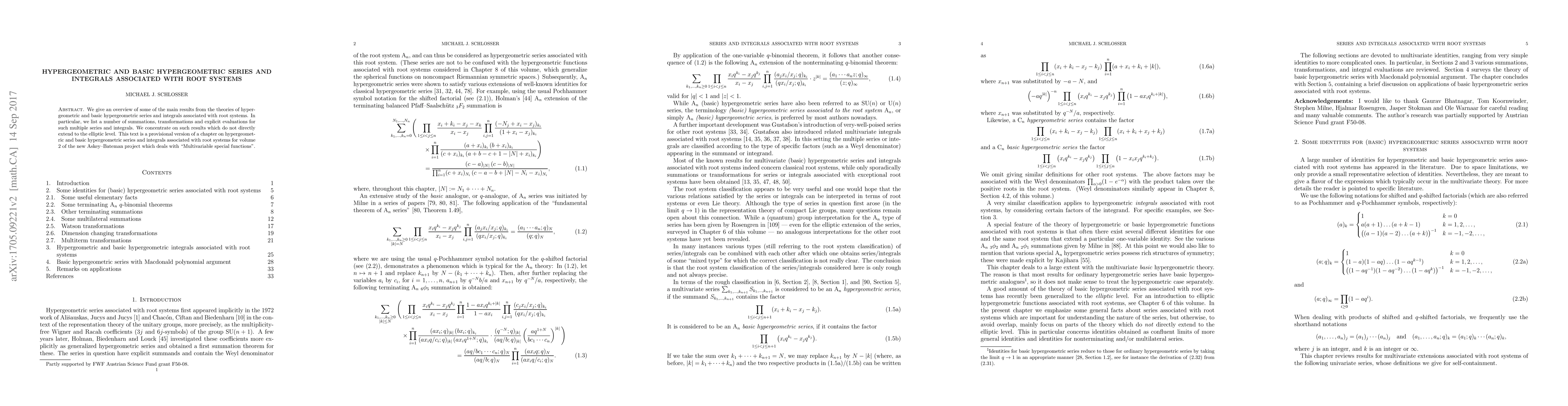 This paper provides an overview of key results in the theory of hypergeometric and basic hypergeometric series and integrals linked to root systems, focusing on summations, transformations, and evaluations that do not extend to the elliptic level. It serves as a preliminary chapter for volume 2 of the Askey-Bateman project on multivariable special functions.