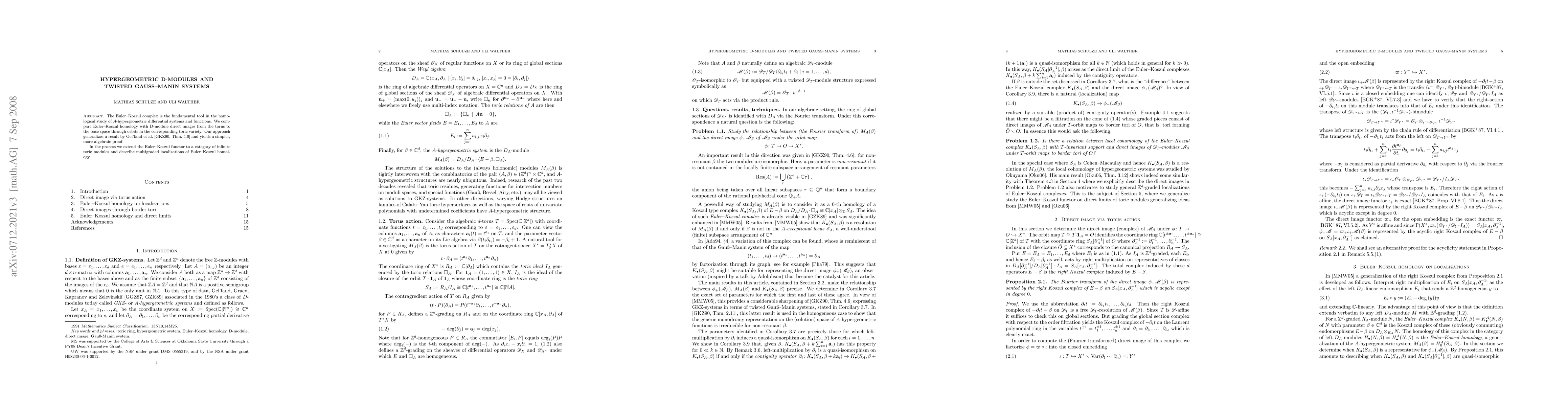 This paper studies A-hypergeometric differential systems using the Euler-Koszul complex, comparing its homology with D-module direct images from torus to base space via toric varieties. The work generalizes prior results, offering a simpler algebraic proof and extending the Euler-Koszul functor to infinite toric modules.