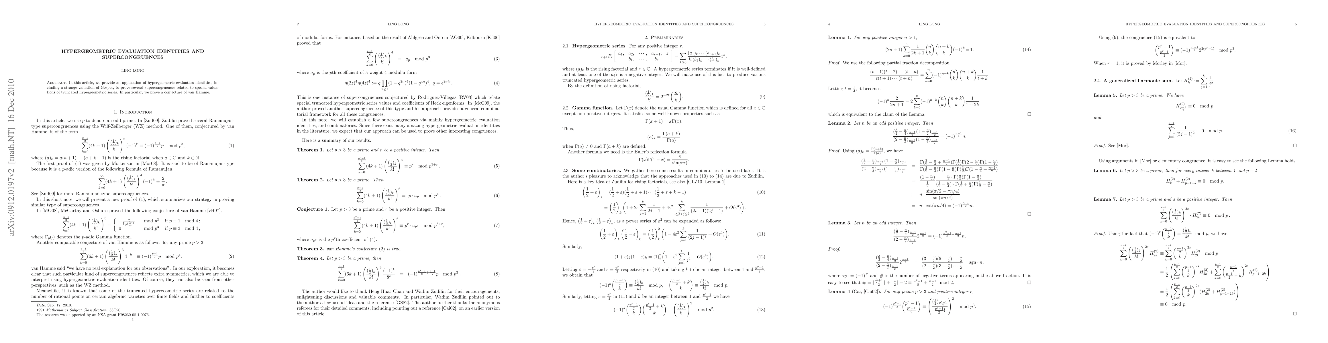 Summary: The paper applies hypergeometric evaluation identities and Gosper's strange valuation to demonstrate supercongruences for special valuations of truncated hypergeometric series, thereby confirming a conjecture proposed by van Hamme.