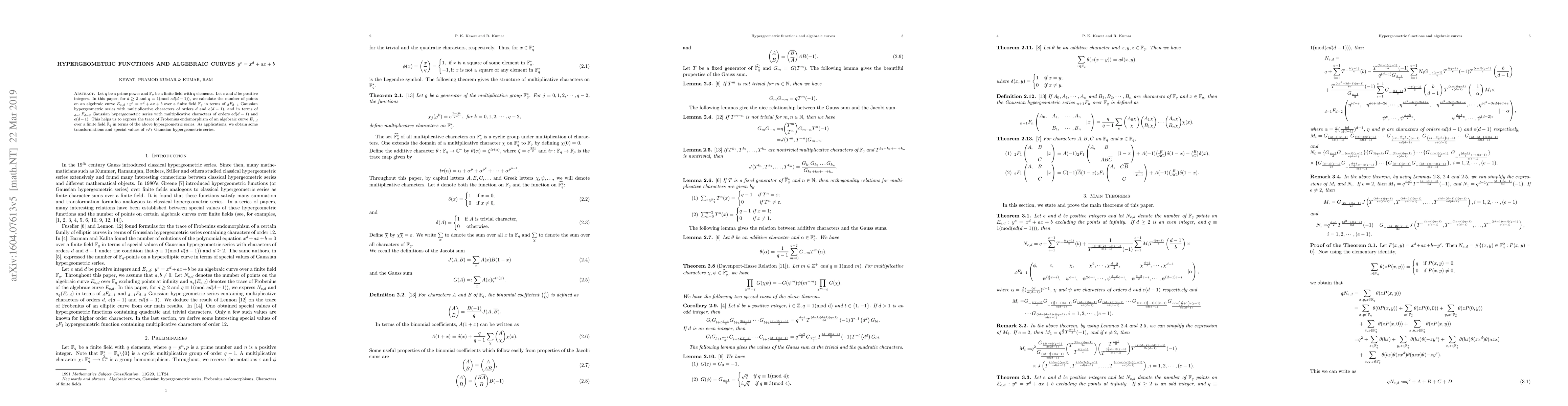 Researchers calculate the number of points on an algebraic curve using Gaussian hypergeometric series, providing a new way to express the trace of Frobenius endomorphism over finite fields.