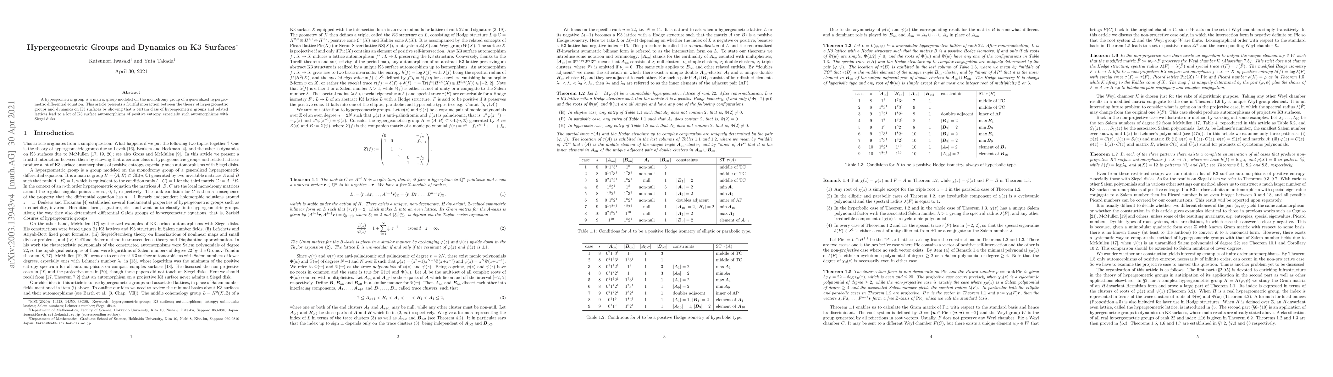 This paper explores the connection between hypergeometric groups and dynamics on K3 surfaces, demonstrating that specific hypergeometric groups and associated lattices generate K3 surface automorphisms with positive entropy, particularly those featuring Siegel disks.