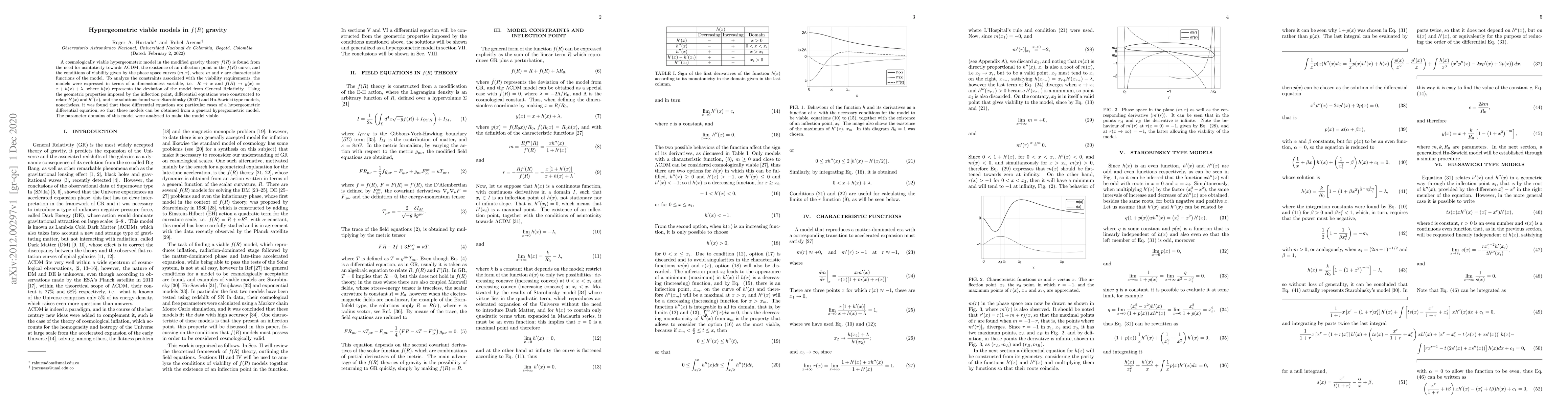 A hypergeometric model in $f(R)$ gravity is found to be cosmologically viable based on asymptoticity towards $ ext{ΛCDM}$ and an inflection point, providing a new class of models that can explain various phenomena.