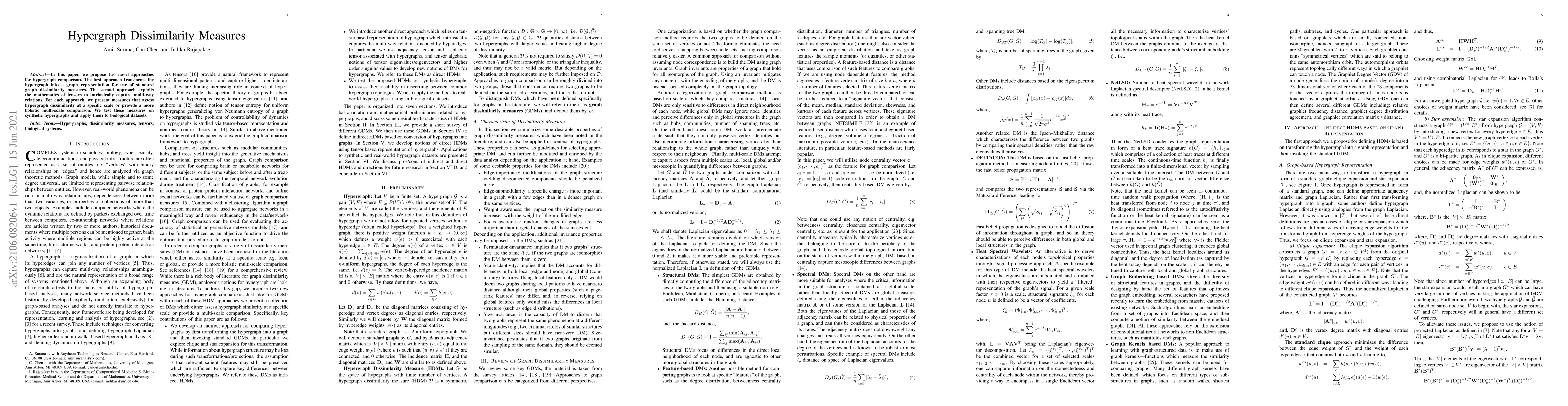 This paper introduces two new methods for comparing hypergraphs: one that converts hypergraphs into graphs for standard graph dissimilarity measures and another that uses tensor mathematics to capture multi-way relations. Both approaches offer specific and multi-scale dissimilarity measures tested on synthetic and biological datasets.