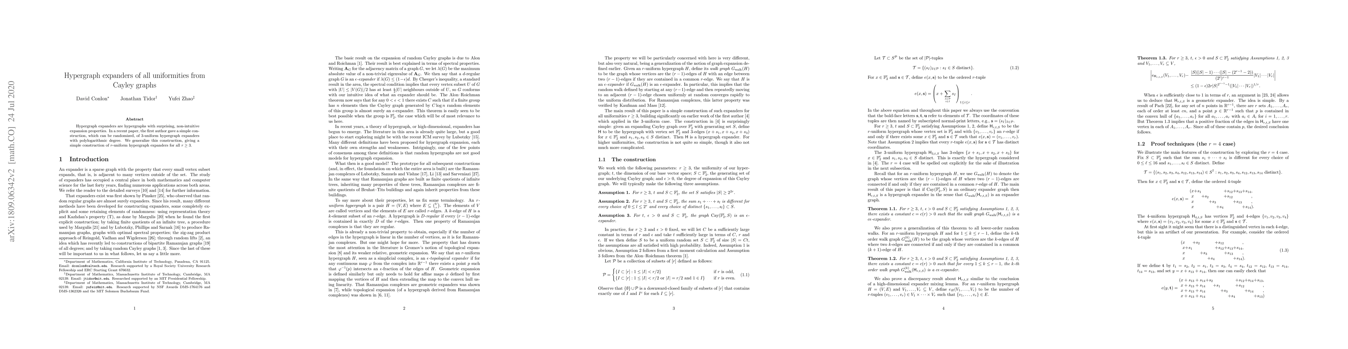 This paper generalizes a construction method for creating $3$-uniform hypergraph expanders to produce $r$-uniform hypergraph expanders for all $r \geq 3$, maintaining polylogarithmic degree and leveraging the simplicity of Cayley graphs.