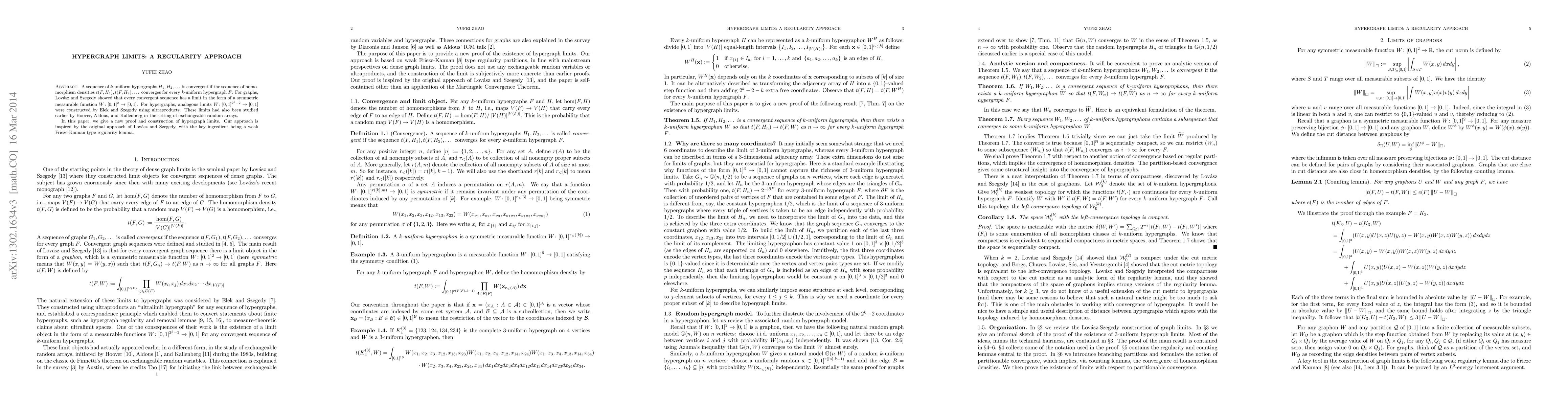 This paper presents a new proof and construction of hypergraph limits using a regularity approach inspired by Lovász and Szegedy's original method for graphs, employing a weak Frieze-Kannan type regularity lemma as a key component.