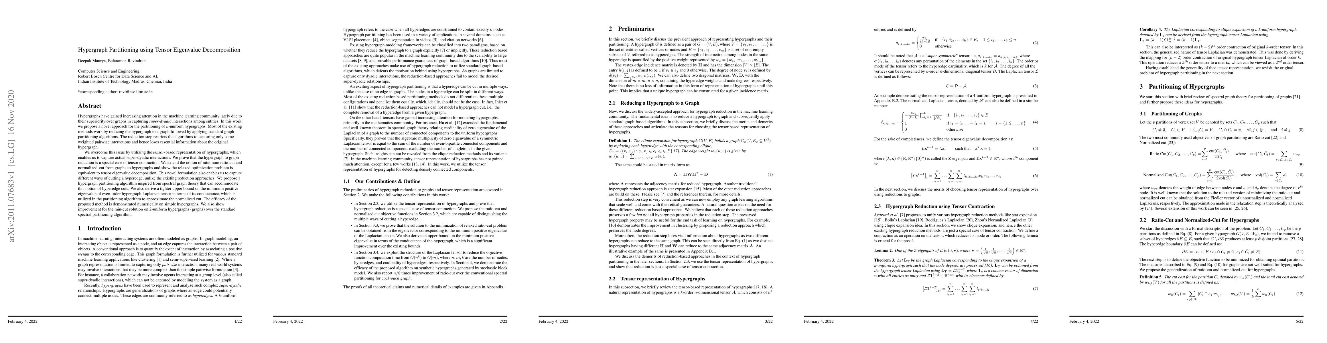 This paper proposes a new hypergraph partitioning method using tensor eigenvalue decomposition to capture super-dyadic interactions, avoiding the loss of information inherent in graph reduction techniques. It extends graph partitioning concepts to hypergraphs and demonstrates improved performance on simple hypergraphs.