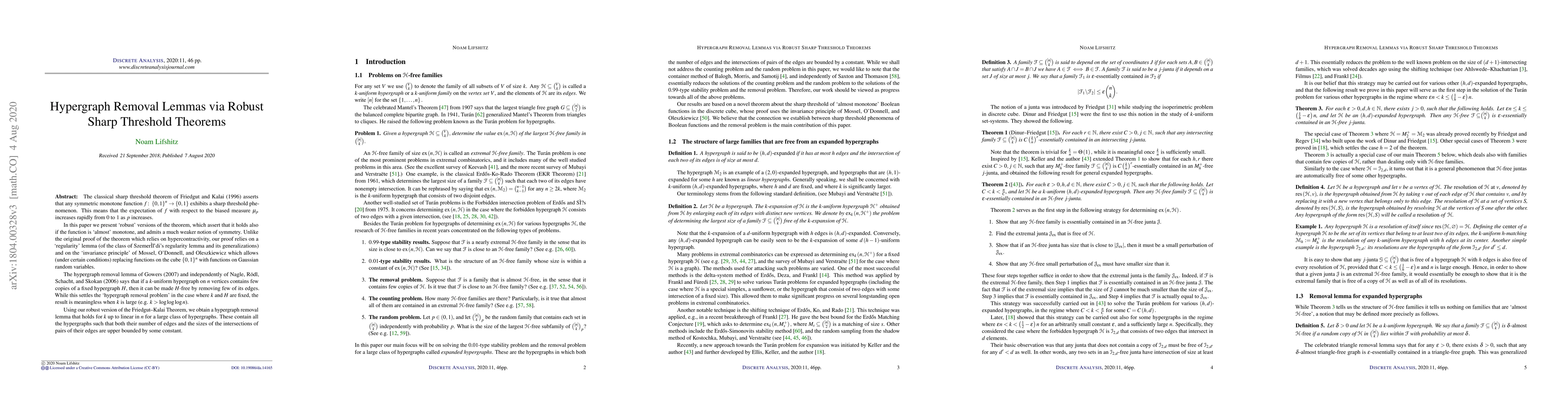 This paper presents robust versions of the Friedgut-Kalai sharp threshold theorem, proving that it holds under weaker conditions of symmetry and monotonicity. It leverages a regularity lemma and the invariance principle to establish a hypergraph removal lemma applicable to large $k$-uniform hypergraphs, extending the result beyond fixed $k$.