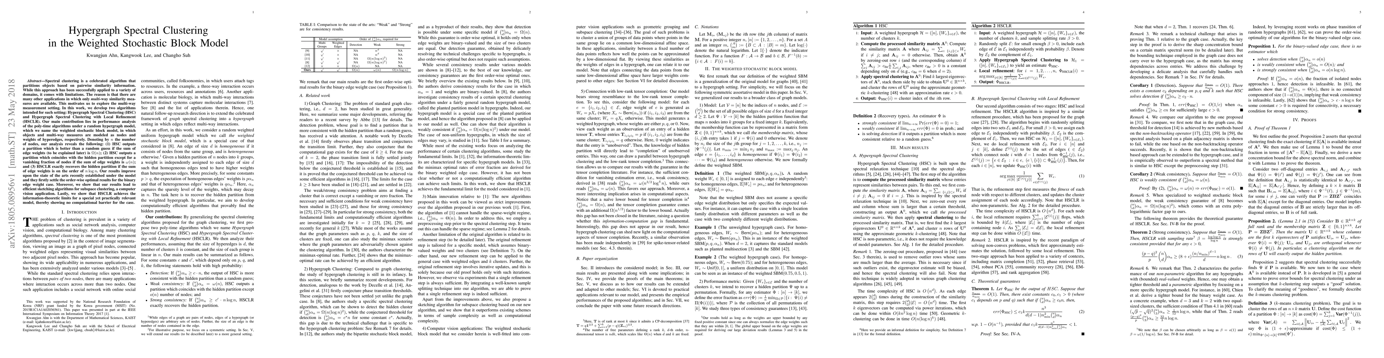 This paper introduces two hypergraph spectral clustering algorithms, HSC and HSCLR, designed to handle multi-way similarity measures. The authors analyze their performance under a weighted stochastic block model, showing that HSC can achieve optimal partition accuracy when the sum of edge weights is sufficiently large, and HSCLR can recover the hidden partition exactly under certain conditions.