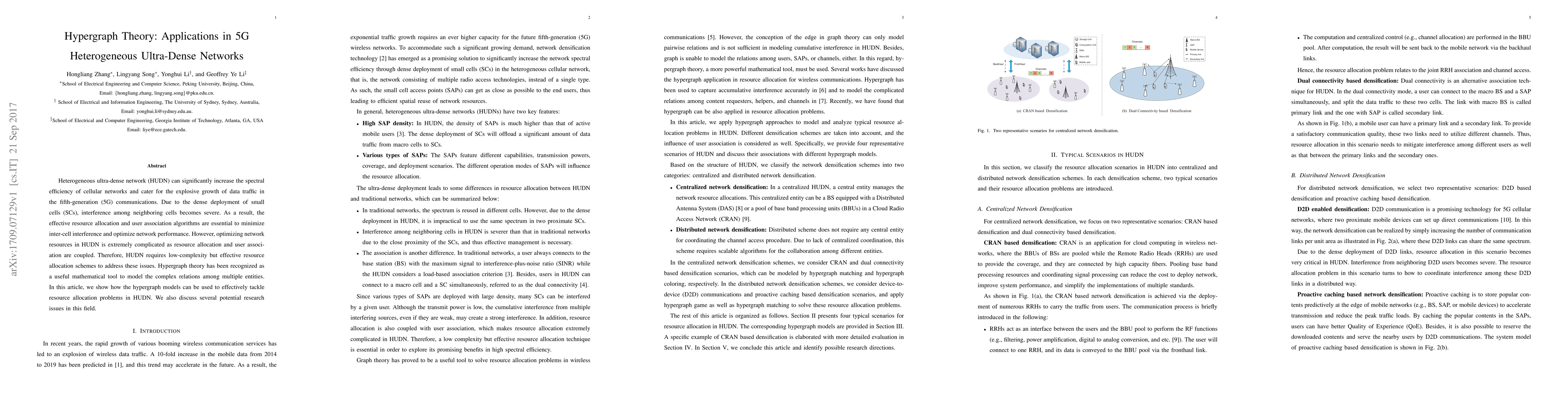 This paper explores the application of hypergraph theory to optimize resource allocation and user association in 5G heterogeneous ultra-dense networks (HUDN), addressing severe inter-cell interference through low-complexity schemes. It highlights the potential of hypergraph models to simplify complex relations among multiple entities in HUDN.