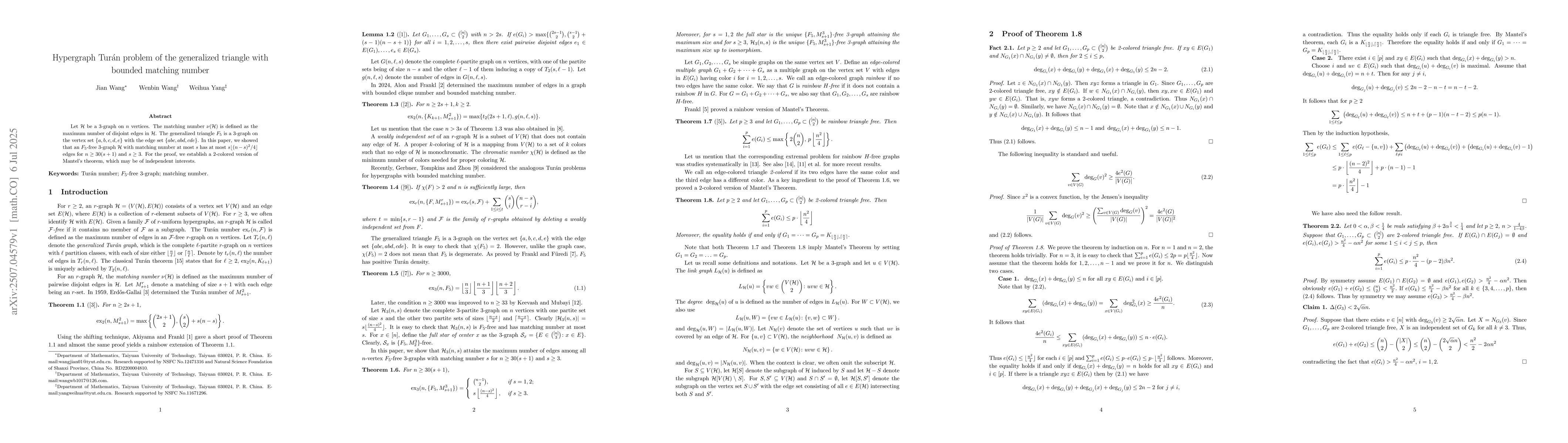 Let $\mathcal{H}$ be a 3-graph on $n$ vertices. The matching number $\nu(\mathcal{H})$ is defined as the maximum number of disjoint edges in $\mathcal{H}$. The generalized triangle $F_5$ is a 3-graph on the vertex set $\{a,b,c,d,e\}$ with the edge set $\{abc, abd,cde\}$. In this paper, we showed that an $F_5$-free 3-graph $\mathcal{H}$ with matching number at most $s$ has at most $s\lfloor (n-s)^2/4\rfloor$ edges for $n\geq 30(s+1)$ and $s\geq 3$. For the proof, we establish a 2-colored version of Mantel's theorem, which may be of independent interests.
