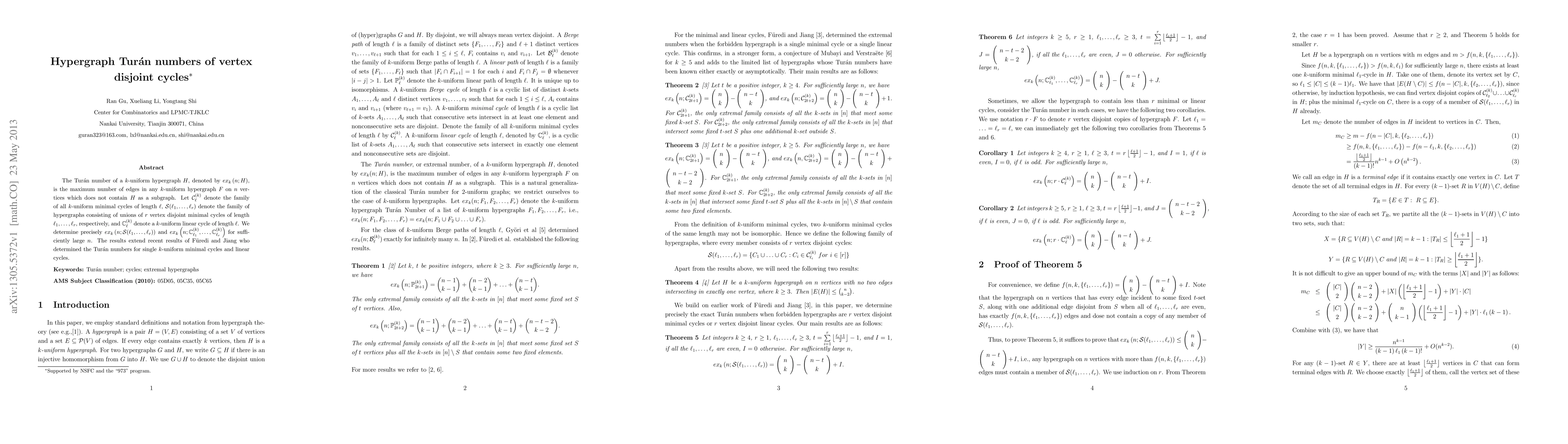 The Tur\'an number of a $k$-uniform hypergraph $H$, denoted by $e{x_k}\left({n;H} \right)$, is the maximum number of edges in any $k$-uniform hypergraph $F$ on $n$ vertices which does not contain $H$ as a subgraph. Let $\mathcal{C}_{\ell}^{\left(k \right)}$ denote the family of all $k$-uniform minimal cycles of length $\ell$, $\mathcal{S}(\ell_1,\ldots,\ell_r)$ denote the family of hypergraphs consisting of unions of $r$ vertex disjoint minimal cycles of length $\ell_1,\ldots,\ell_r$, respectively, and $\mathbb{C}_{\ell}^{\left(k \right)}$ denote a $k$-uniform linear cycle of length $\ell$. We determine precisely $e{x_k}\left({n;\mathcal{S}(\ell_1,\ldots,\ell_r)} \right)$ and $e{x_k}\left({n;\mathbb{C}_{{\ell_1}}^{\left(k \right)}, \ldots, \mathbb{C}_{{\ell_r}}^{\left(k \right)}} \right)$ for sufficiently large $n$. The results extend recent results of F\"{u}redi and Jiang who determined the Tur\'an numbers for single $k$-uniform minimal cycles and linear cycles.