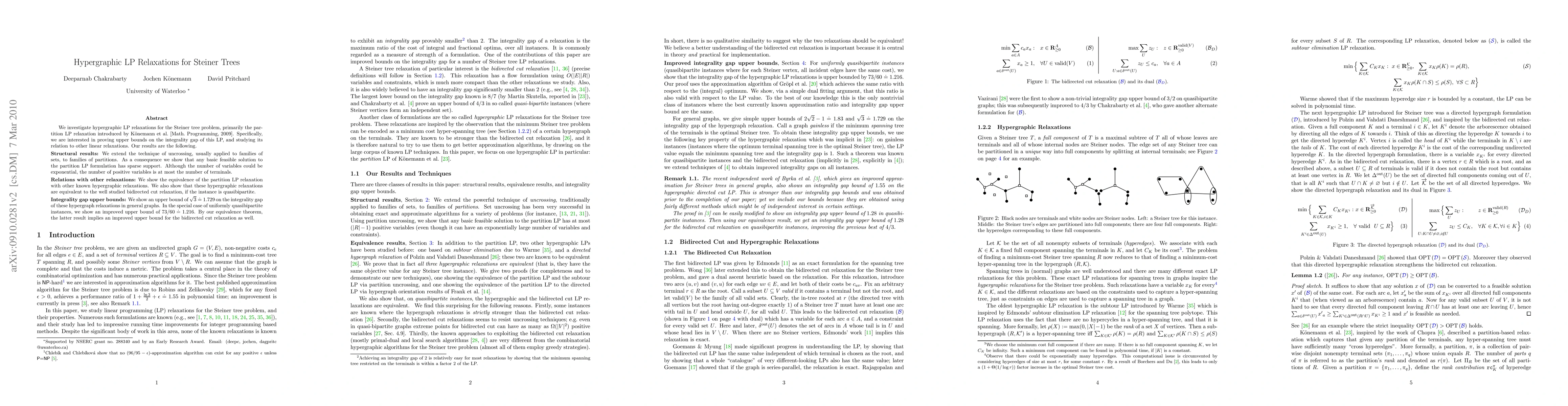 This paper explores hypergraphic LP relaxations for the Steiner tree problem, focusing on the partition LP relaxation. It extends the uncrossing technique to partitions, proving that basic feasible solutions have sparse support. The study also establishes equivalences between the partition LP relaxation and other hypergraphic relaxations, and determines an integrality gap upper bound of sqrt(3) for general graphs, with an improved bound of 73/60 for uniformly quasibipartite instances.