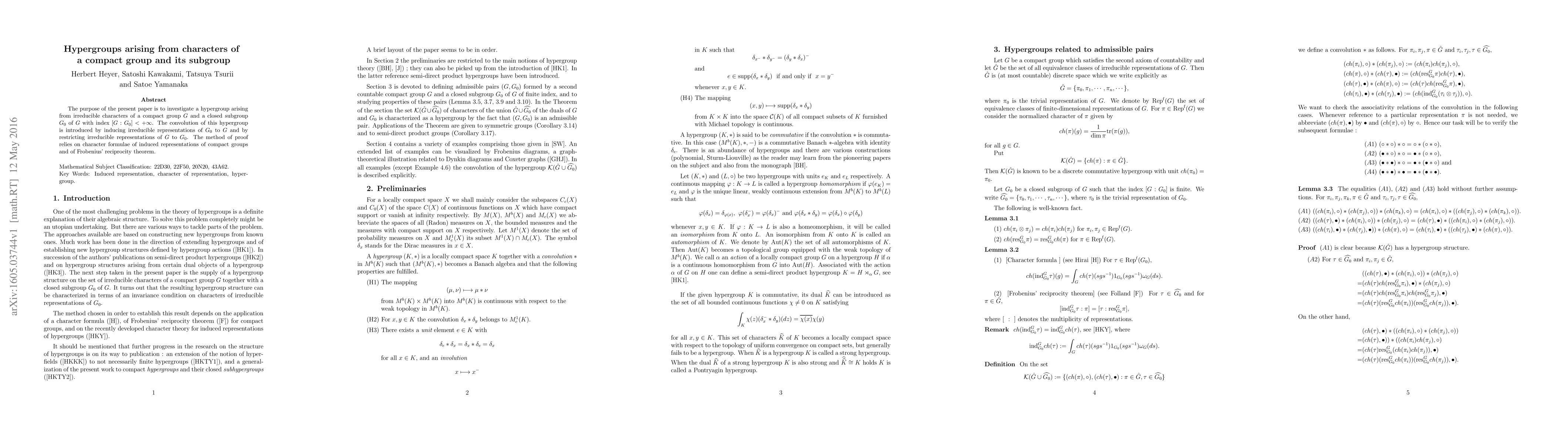 This paper explores a hypergroup formed from irreducible characters of a compact group G and its closed subgroup, using induced and restricted representations for convolution. Proofs utilize character formulae and Frobenius reciprocity theorem.