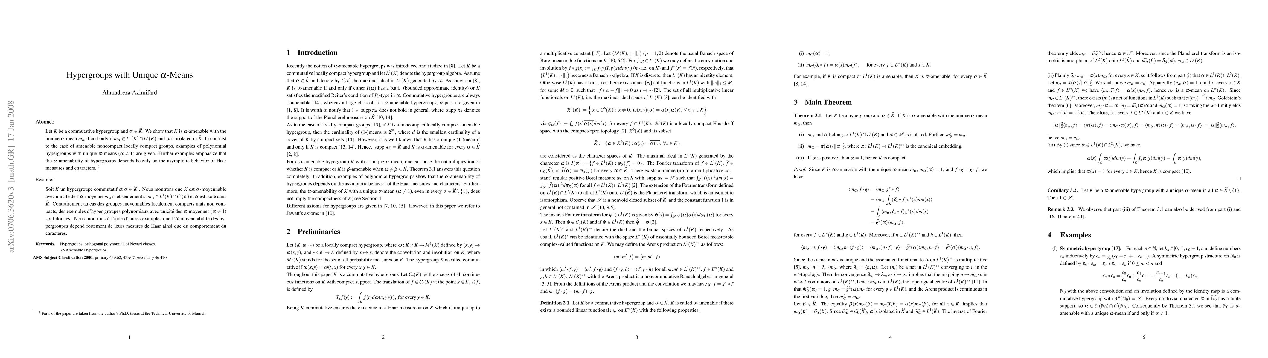 Let $K$ be a commutative hypergroup and $\alpha\in \hat{K}$. We show that $K$ is $\alpha$-amenable with the unique $\alpha$-mean $m_\alpha$ if and only if $m_\alpha\in L^1(K)\cap L^2(K)$ and $\alpha$ is isolated in $\hat{K}$. In contrast to the case of amenable noncompact locally compact groups, examples of polynomial hypergroups with unique $\alpha$-means ($\alpha\not=1$) are given. Further examples emphasize that the $\alpha$-amenability of hypergroups depends heavily on the asymptotic behavior of Haar measures and characters.