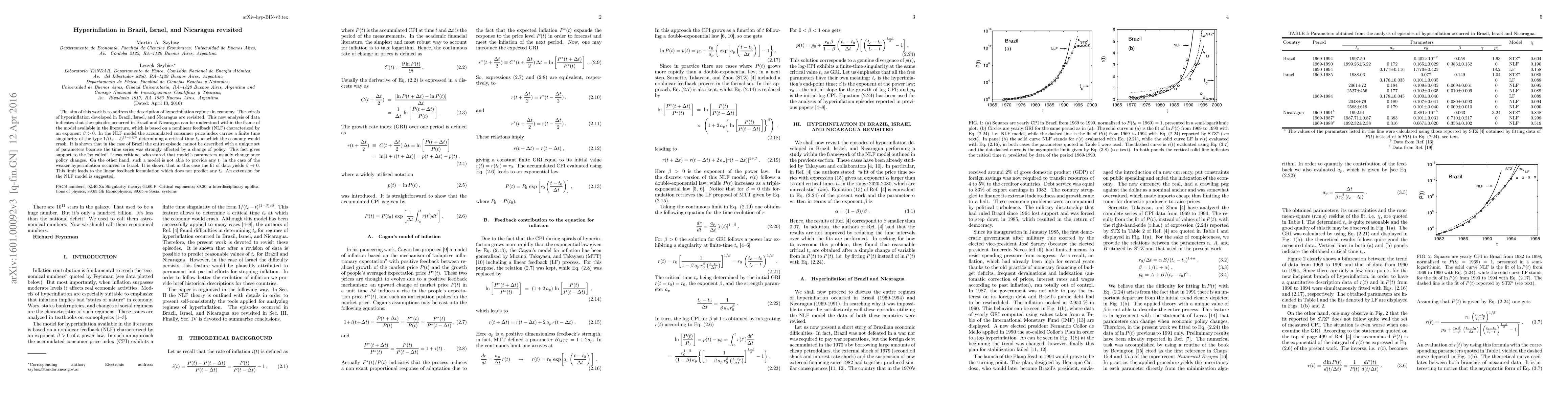 This paper revisits hyperinflation in Brazil, Israel, and Nicaragua, applying a nonlinear feedback model to understand the economic spirals. The Brazilian and Nicaraguan cases fit the model, but Brazil's hyperinflation required different parameters due to policy changes, supporting the Lucas critique. In contrast, Israel's weaker hyperinflation does not predict a crash time, suggesting a linear feedback model instead.