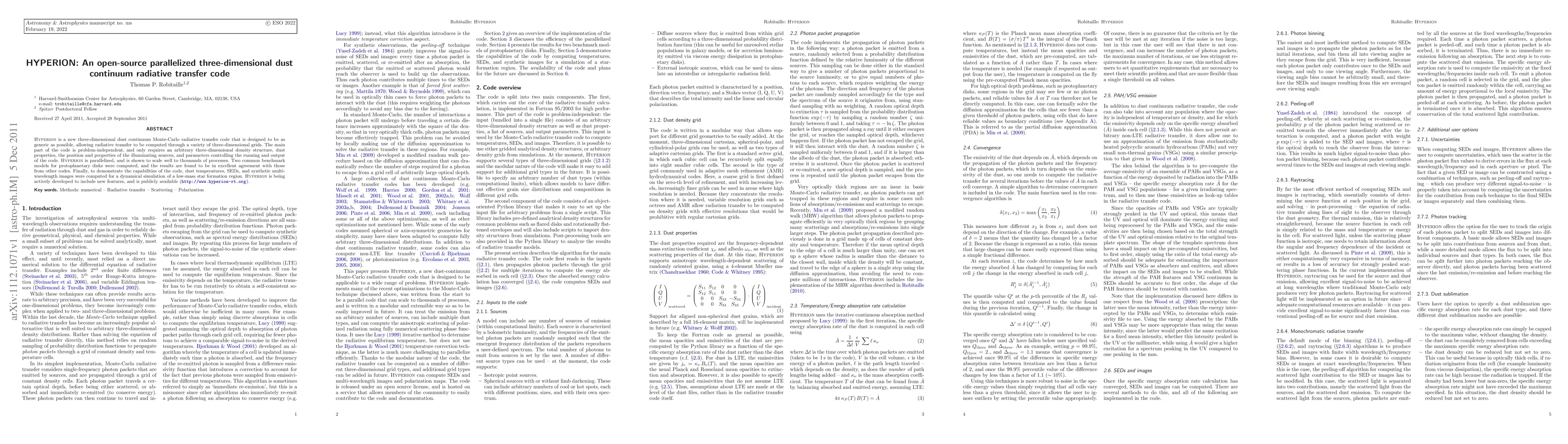 HYPERION is a versatile, parallelized three-dimensional dust continuum radiative transfer code, designed for generic applications across various three-dimensional grids. It scales efficiently with thousands of processes and produces accurate results for protoplanetary disks and star formation simulations.