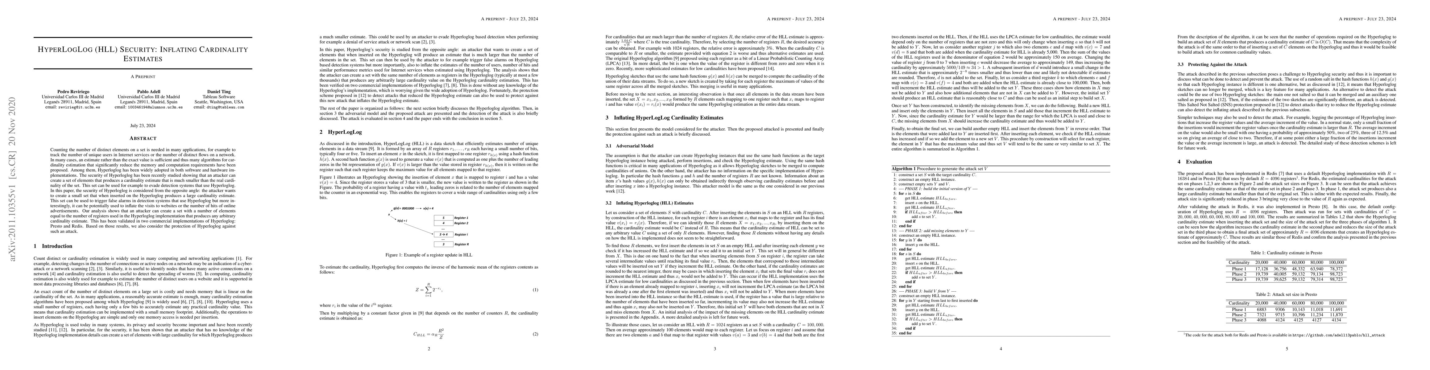 This paper explores the security vulnerabilities of HyperLogLog (HLL) by demonstrating how an attacker can manipulate HLL to inflate cardinality estimates, potentially triggering false alarms or inflating website visits and ad hits. The study validates this attack on two commercial HLL implementations, Presto and Redis, and discusses potential protective measures.