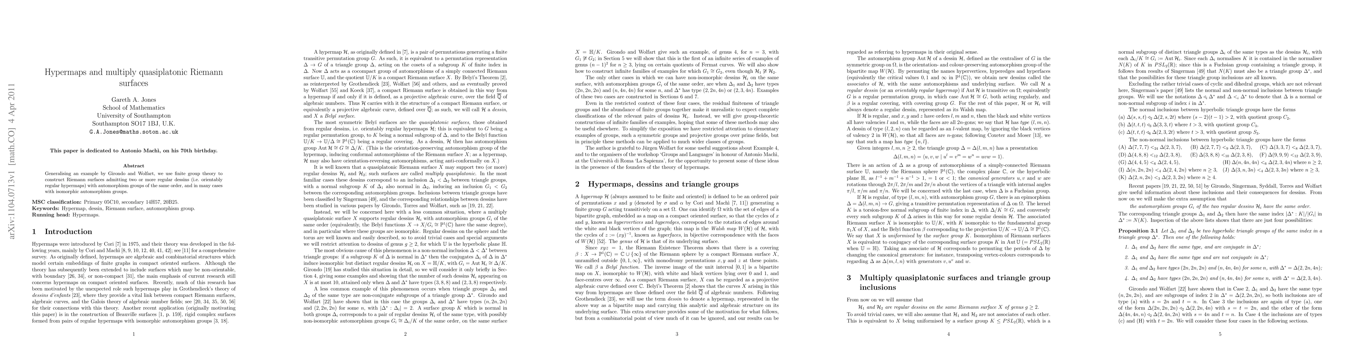 This paper generalizes Girondo and Wolfart's example using finite group theory to construct Riemann surfaces with multiple regular dessins and identical or isomorphic automorphism groups, exploring the concept of multiply quasiplatonic surfaces.