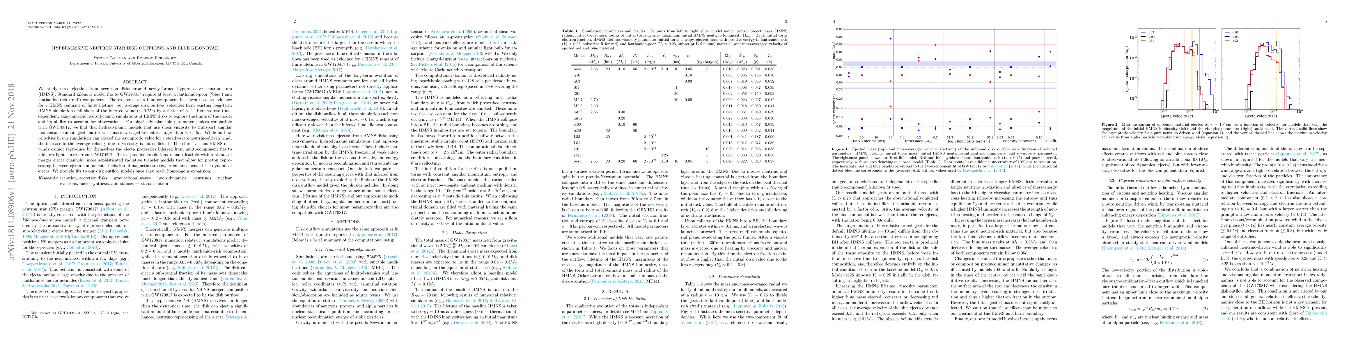 A study on hypermassive neutron star disks found that hydrodynamic models cannot eject matter at velocities exceeding 0.15c without sophisticated radiative transfer models, magnetic stresses, or dynamical ejecta, suggesting alternative explanations for blue kilonova observations.