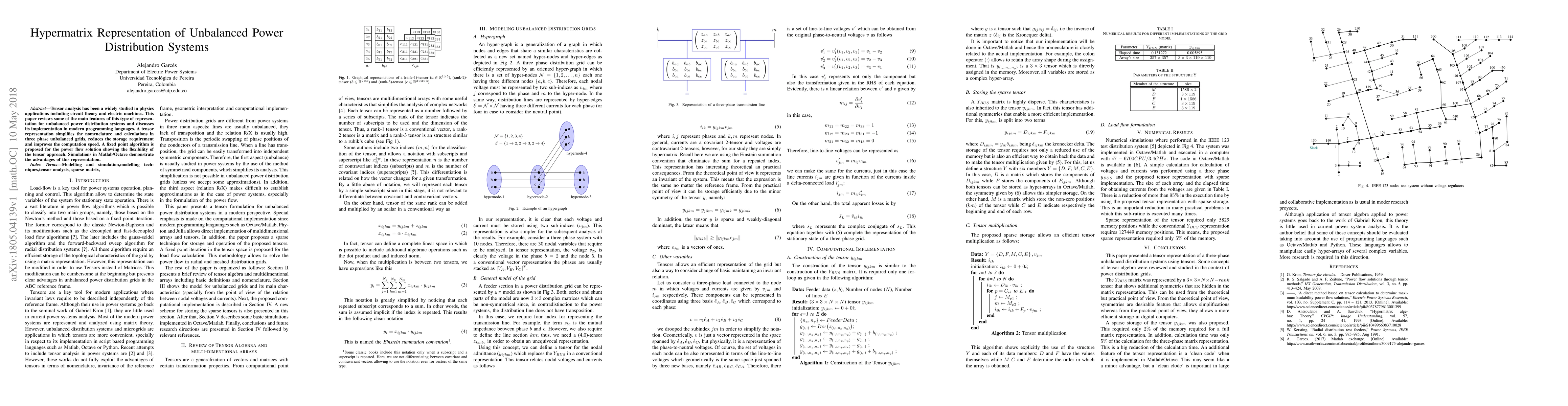 This paper reviews tensor representation for unbalanced power distribution systems, highlighting its simplification of nomenclature, reduced storage, and improved computation speed. A fixed point algorithm is proposed for power flow solutions, with Matlab/Octave simulations demonstrating the advantages of this tensor approach.