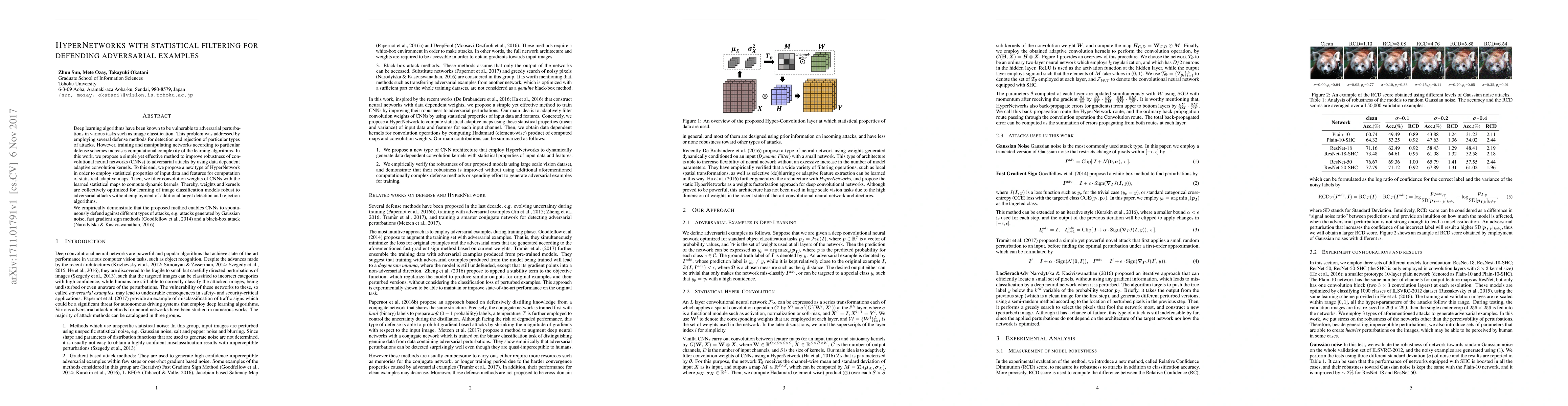 Deep learning algorithms have been known to be vulnerable to adversarial perturbations in various tasks such as image classification. This problem was addressed by employing several defense methods for detection and rejection of particular types of attacks. However, training and manipulating networks according to particular defense schemes increases computational complexity of the learning algorithms. In this work, we propose a simple yet effective method to improve robustness of convolutional neural networks (CNNs) to adversarial attacks by using data dependent adaptive convolution kernels. To this end, we propose a new type of HyperNetwork in order to employ statistical properties of input data and features for computation of statistical adaptive maps. Then, we filter convolution weights of CNNs with the learned statistical maps to compute dynamic kernels. Thereby, weights and kernels are collectively optimized for learning of image classification models robust to adversarial attacks without employment of additional target detection and rejection algorithms. We empirically demonstrate that the proposed method enables CNNs to spontaneously defend against different types of attacks, e.g. attacks generated by Gaussian noise, fast gradient sign methods (Goodfellow et al., 2014) and a black-box attack(Narodytska & Kasiviswanathan, 2016).