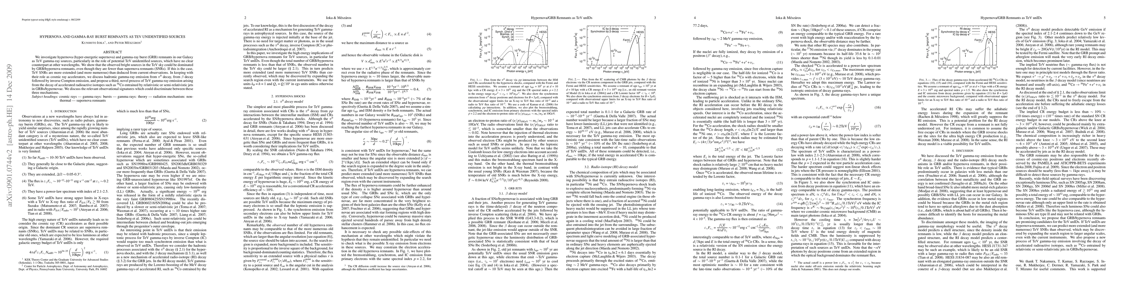 This paper explores hypernova and gamma-ray burst remnants as potential TeV gamma-ray sources, suggesting they may dominate unidentified bright TeV sources. It proposes novel gamma-ray emission mechanisms from accelerated radioactive isotopes in these remnants, alongside traditional hadronic processes.