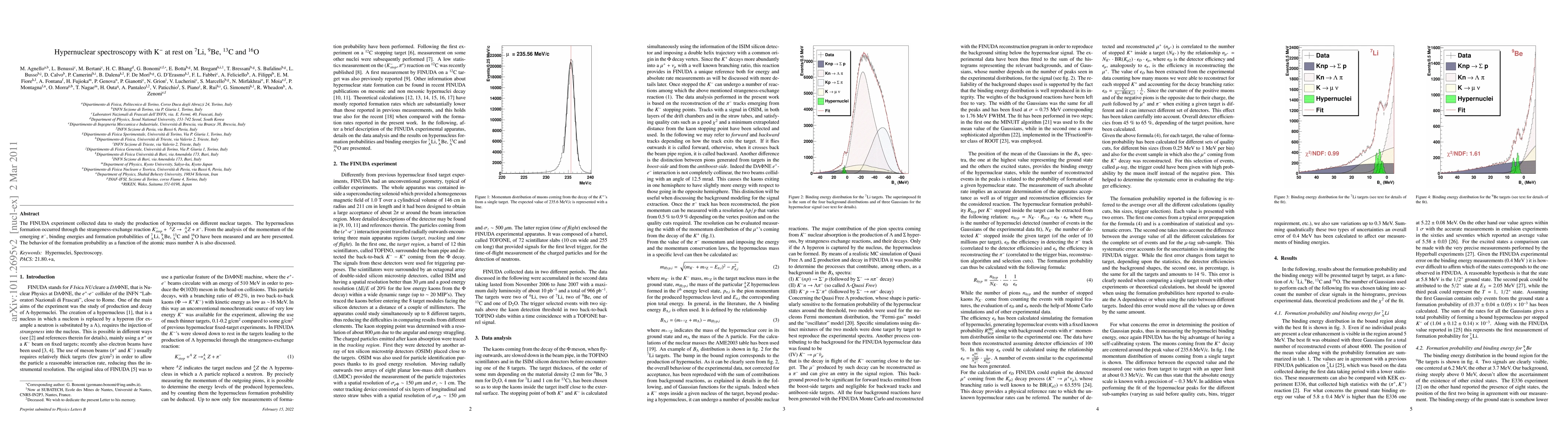 Researchers studied the production of hypernuclei on different targets using Kaon- (K-) particles, measuring formation probabilities and binding energies for various elements including lithium, beryllium, carbon and oxygen. The study explores how formation probability varies with atomic mass number A.