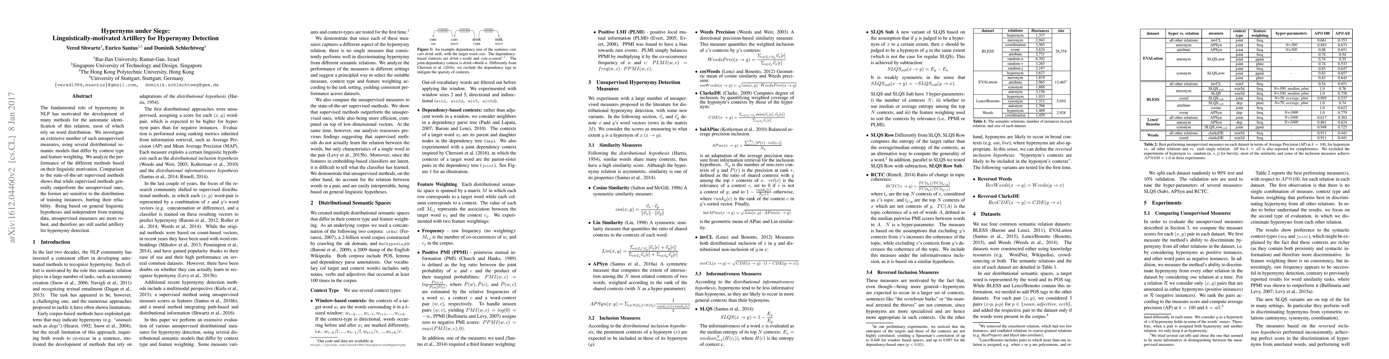 This paper explores various unsupervised methods for detecting hypernymy in NLP, comparing their performance against supervised methods. Despite supervised methods generally outperforming them, unsupervised measures, grounded in linguistic principles and free from training data dependency, prove more robust and reliable for hypernymy detection.