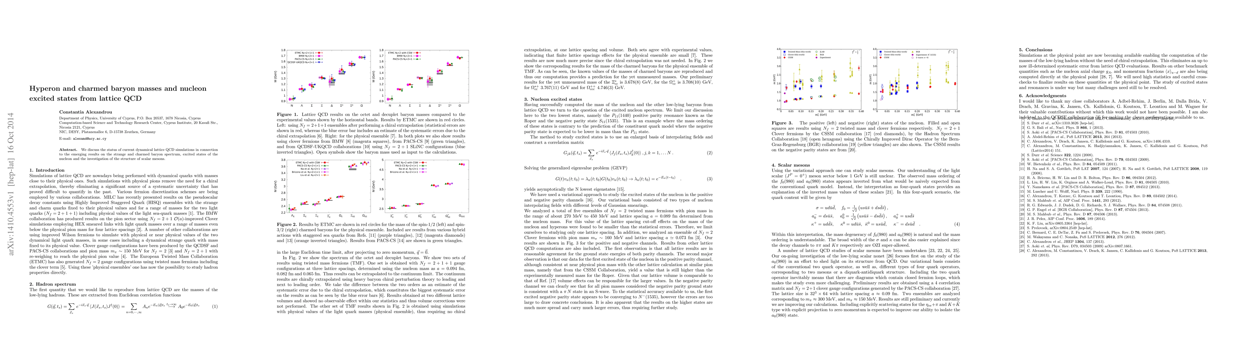 Summary: This paper reviews the latest lattice QCD simulations regarding the masses of hyperons and charmed baryons, as well as the excited states of nucleons, and explores the implications for the structure of scalar mesons. The findings contribute to a deeper understanding of the underlying dynamics of strong interactions.