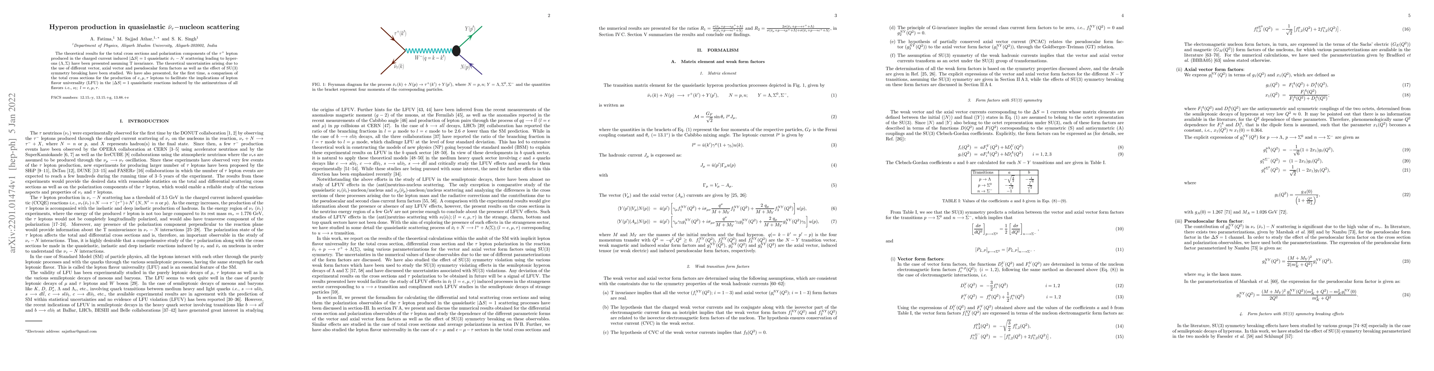 This paper presents theoretical results for $\bar{\nu}_{\tau}$-nucleon scattering, focusing on hyperon production and the total cross sections for $\tau^{+}$ leptons, while examining uncertainties from form factors and SU(3) symmetry. It also compares cross sections for $\nu_{e}$, $\nu_{\mu}$, and $\nu_{\tau}$ to discuss lepton flavor universality.