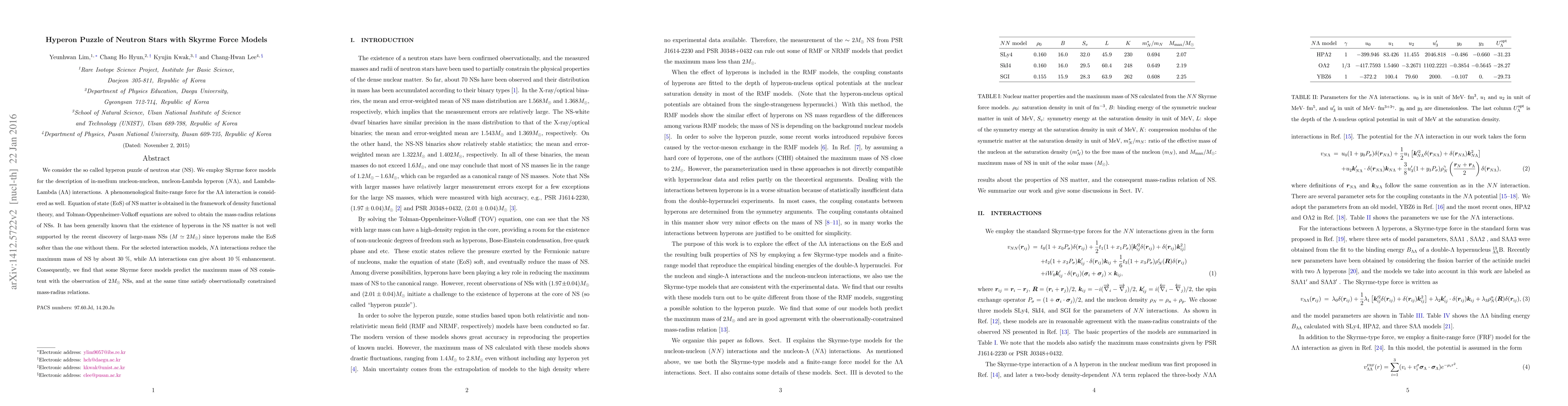 Research paper explores how Skyrme force models can explain neutron star masses consistent with recent discoveries, suggesting that certain interactions may soften the equation of state enough to support such massive stars.