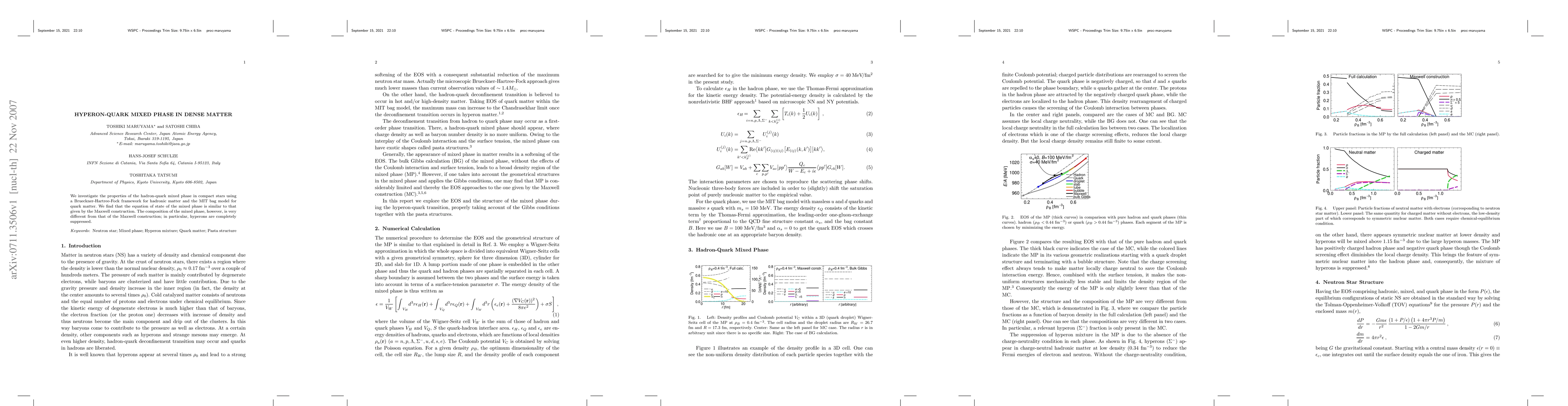 This study explores the hadron-quark mixed phase in dense matter using a Brueckner-Hartree-Fock framework and the MIT bag model, finding an equation of state similar to the Maxwell construction but with hyperons completely suppressed instead of present.