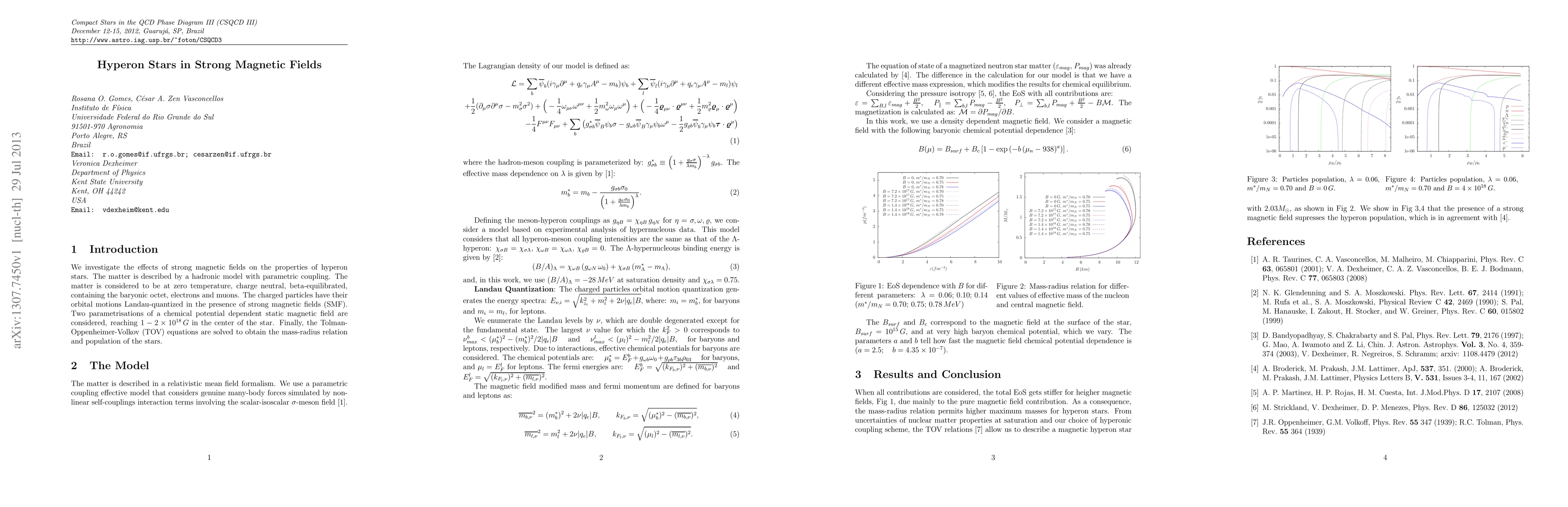 We investigate the effects of strong magnetic fields on the properties of hyperon stars. The matter is described by a hadronic model with parametric coupling. The matter is considered to be at zero temperature, charge neutral, beta-equilibrated, containing the baryonic octet, electrons and muons. The charged particles have their orbital motions Landau-quantized in the presence of strong magnetic fields (SMF). Two parametrisations of a chemical potential dependent static magnetic field are considered, reaching $1-2 \times 10^{18}\,G$ in the center of the star. Finally, the Tolman-Oppenheimer-Volkov (TOV) equations are solved to obtain the mass-radius relation and population of the stars.