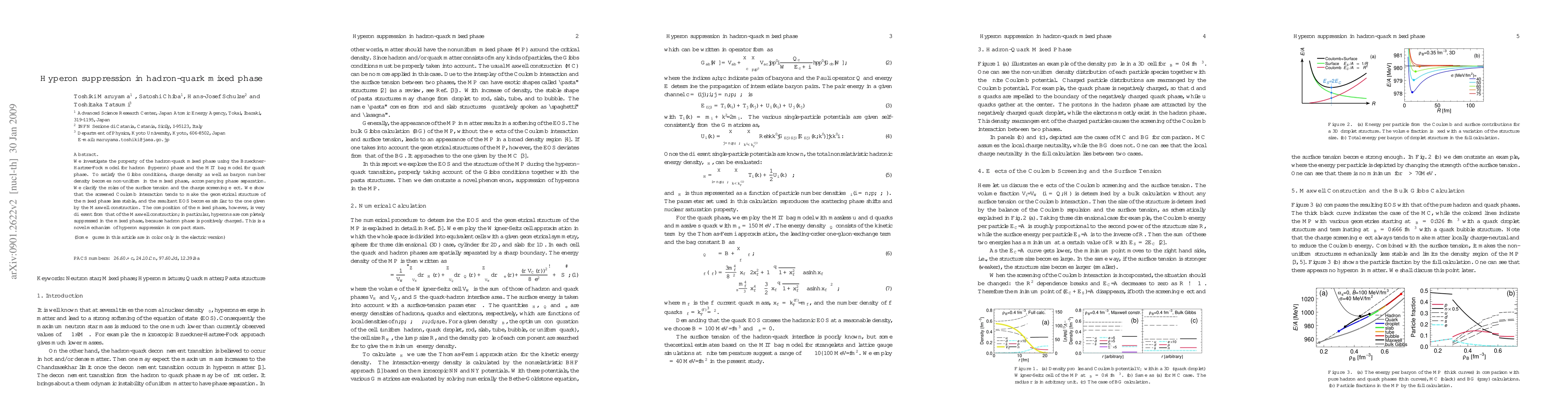 This paper explores the suppression of hyperons in a hadron-quark mixed phase using the Brueckner-Hartree-Fock and MIT bag models. It finds that the screened Coulomb interaction destabilizes the phase, leading to hyperon suppression due to the positively charged hadron phase, offering a new mechanism for hyperon suppression in compact stars.