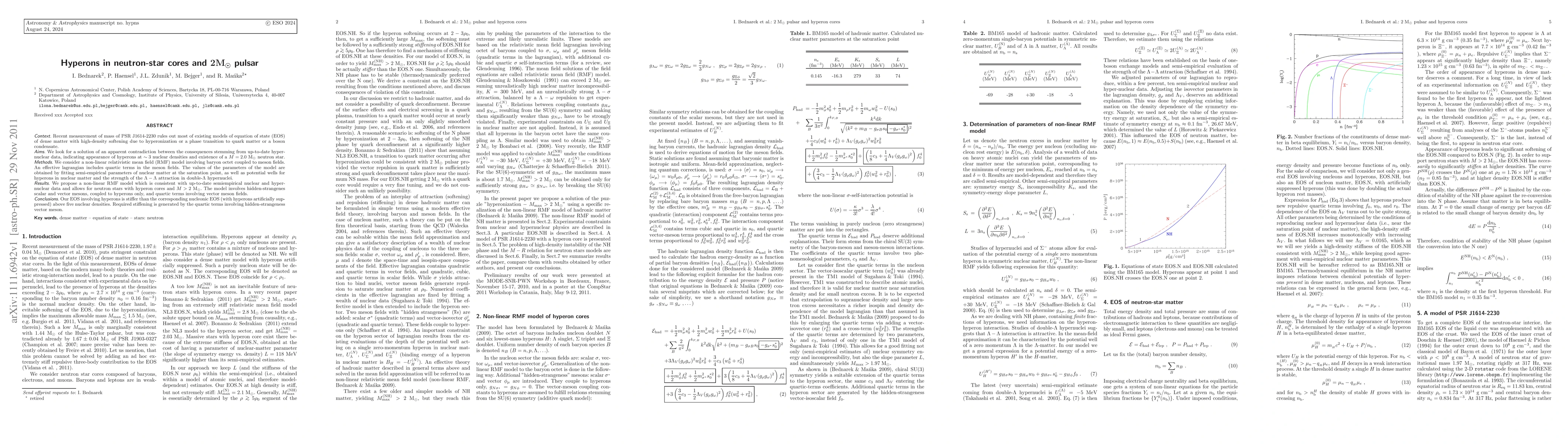 This paper proposes a non-linear relativistic mean field model that reconciles the existence of hyperons in neutron-star cores with the observed mass of PSR J1614-2230, allowing for neutron stars exceeding two solar masses. The model incorporates quartic terms in meson fields to generate a stiffer equation of state above five nuclear densities.