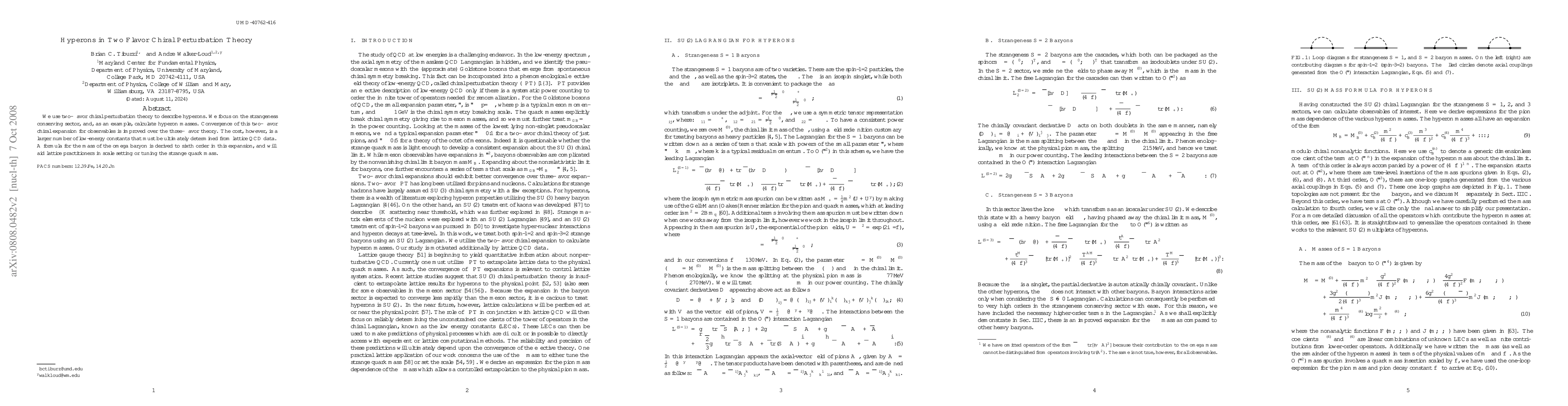 This paper uses two-flavor chiral perturbation theory to study hyperons, focusing on the strangeness conserving sector and calculating hyperon masses. It finds better convergence compared to three-flavor theory but requires more low-energy constants from lattice QCD data, and provides a formula for the omega baryon mass to sixth order.