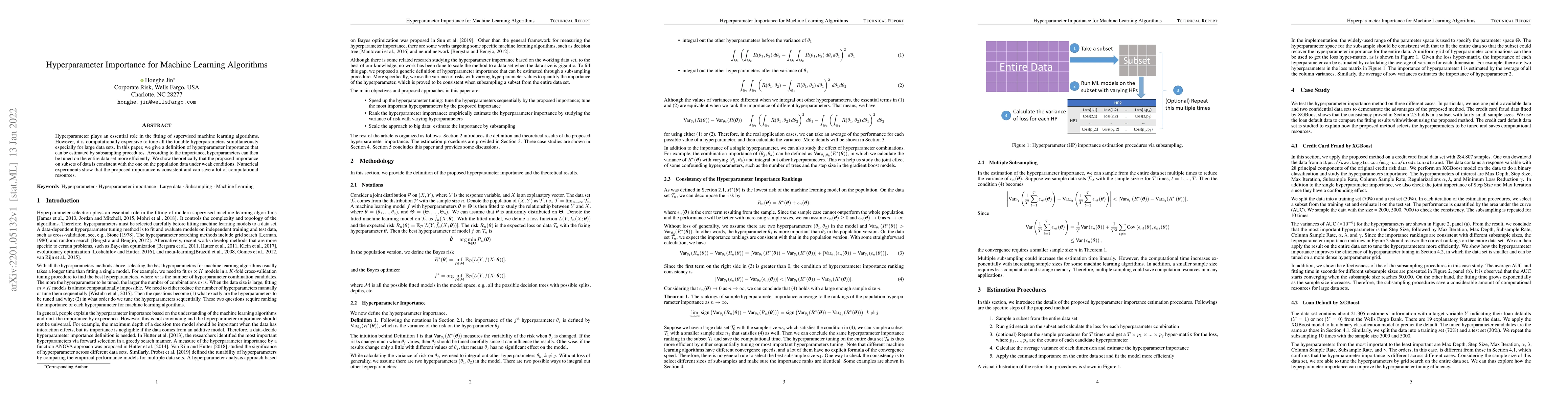 Hyperparameter plays an essential role in the fitting of supervised machine learning algorithms. However, it is computationally expensive to tune all the tunable hyperparameters simultaneously especially for large data sets. In this paper, we give a definition of hyperparameter importance that can be estimated by subsampling procedures. According to the importance, hyperparameters can then be tuned on the entire data set more efficiently. We show theoretically that the proposed importance on subsets of data is consistent with the one on the population data under weak conditions. Numerical experiments show that the proposed importance is consistent and can save a lot of computational resources.