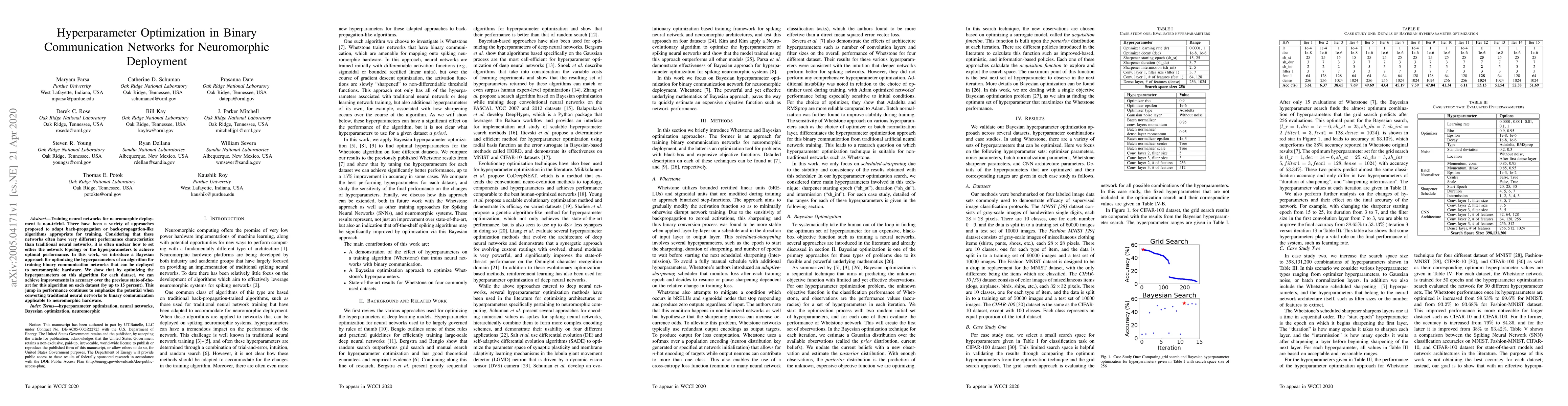 This paper introduces a Bayesian approach for optimizing hyperparameters in training binary communication networks for neuromorphic deployment, achieving up to a 15 percent improvement in accuracy over previous methods. The results highlight the potential benefits of adapting traditional neural networks for neuromorphic hardware.