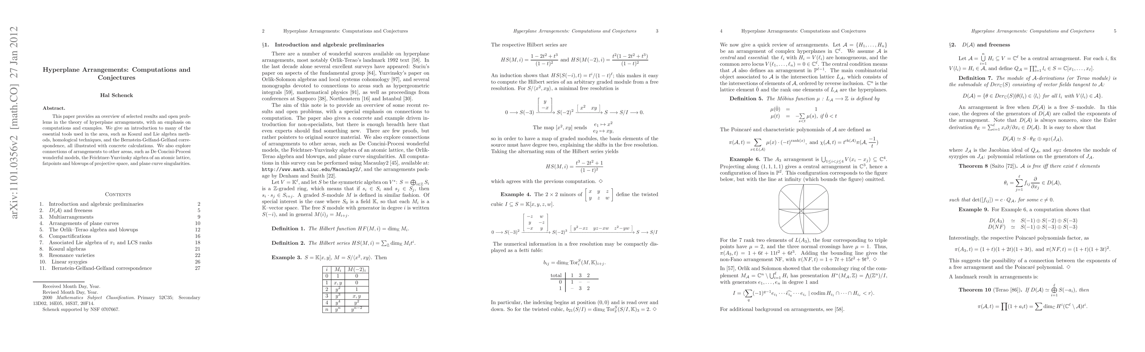 This paper explores hyperplane arrangements through computations and connections to other areas like De Concini-Procesi wonderful models and plane curve singularities, highlighting key tools and open problems in the field.